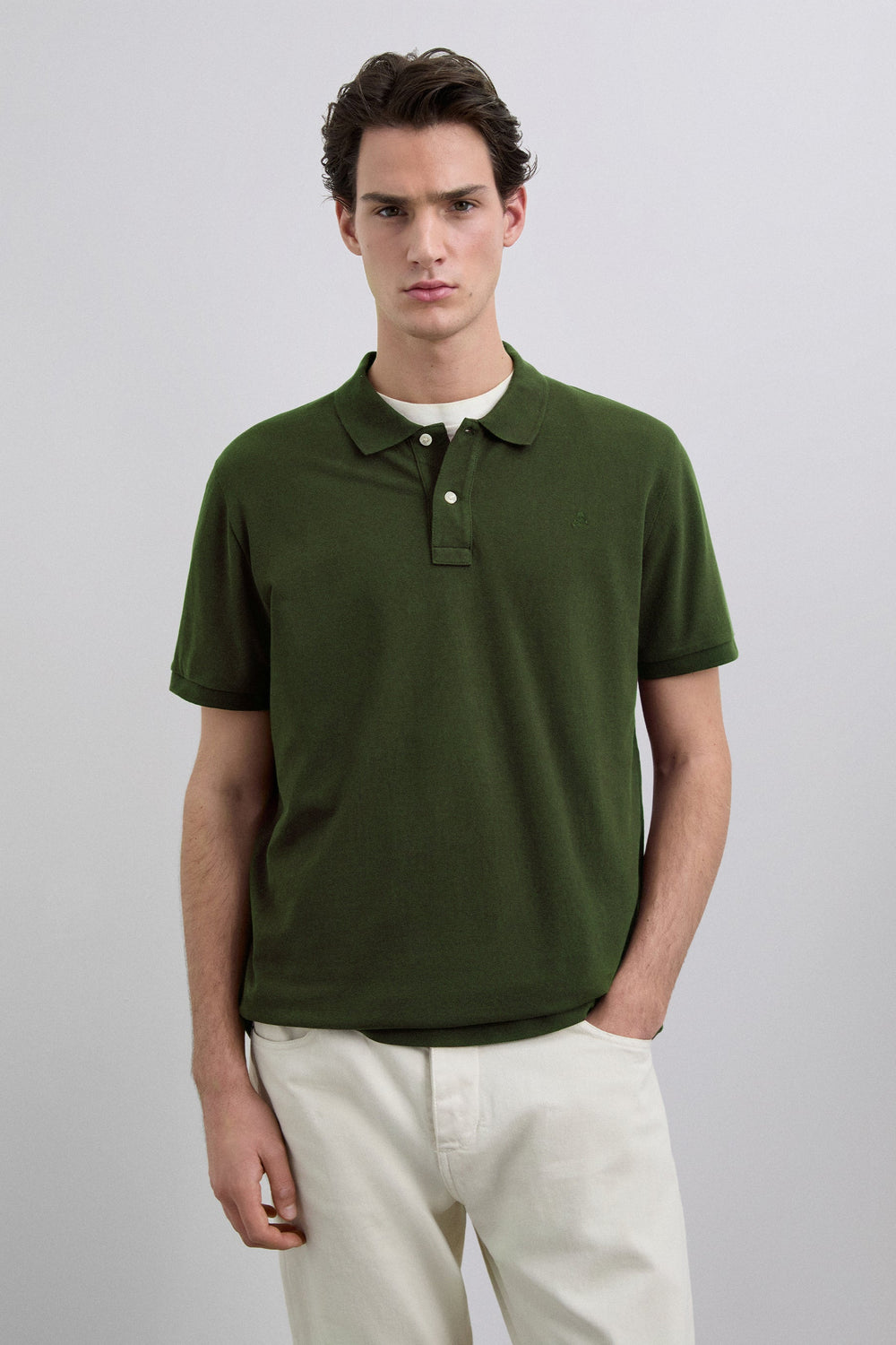 Basic polo shirt made of 100% BCI cotton. Regular fit, classic collar and button fastening. Short sleeves and matching embroidered skull.
