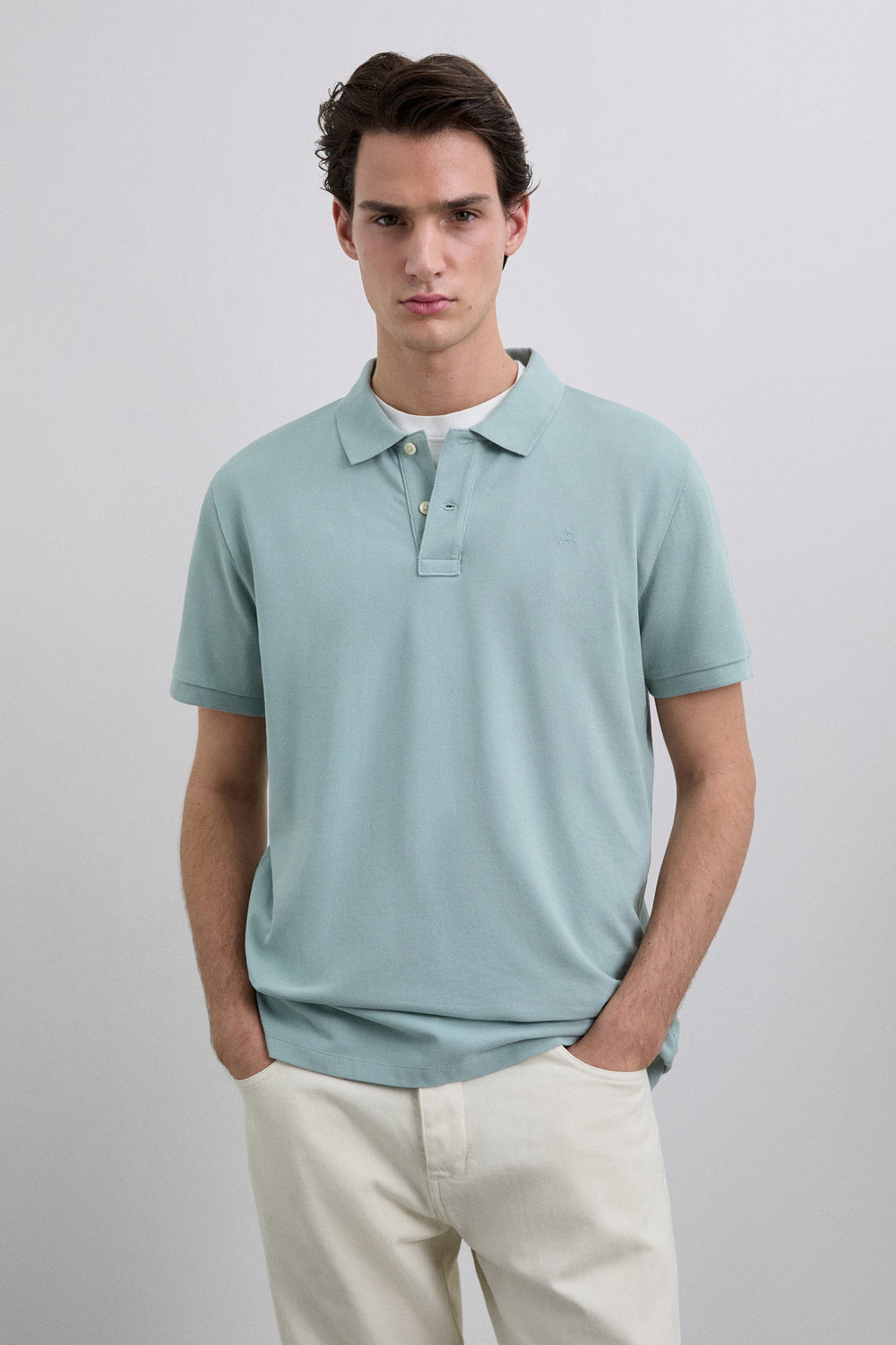Basic polo shirt made of 100% BCI cotton. Regular fit, classic collar and button fastening. Short sleeves and matching embroidered skull.