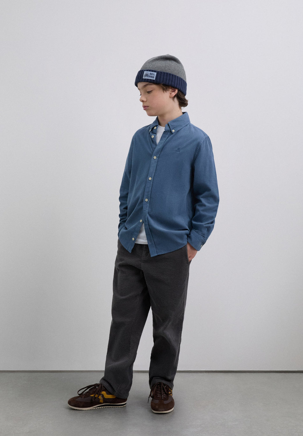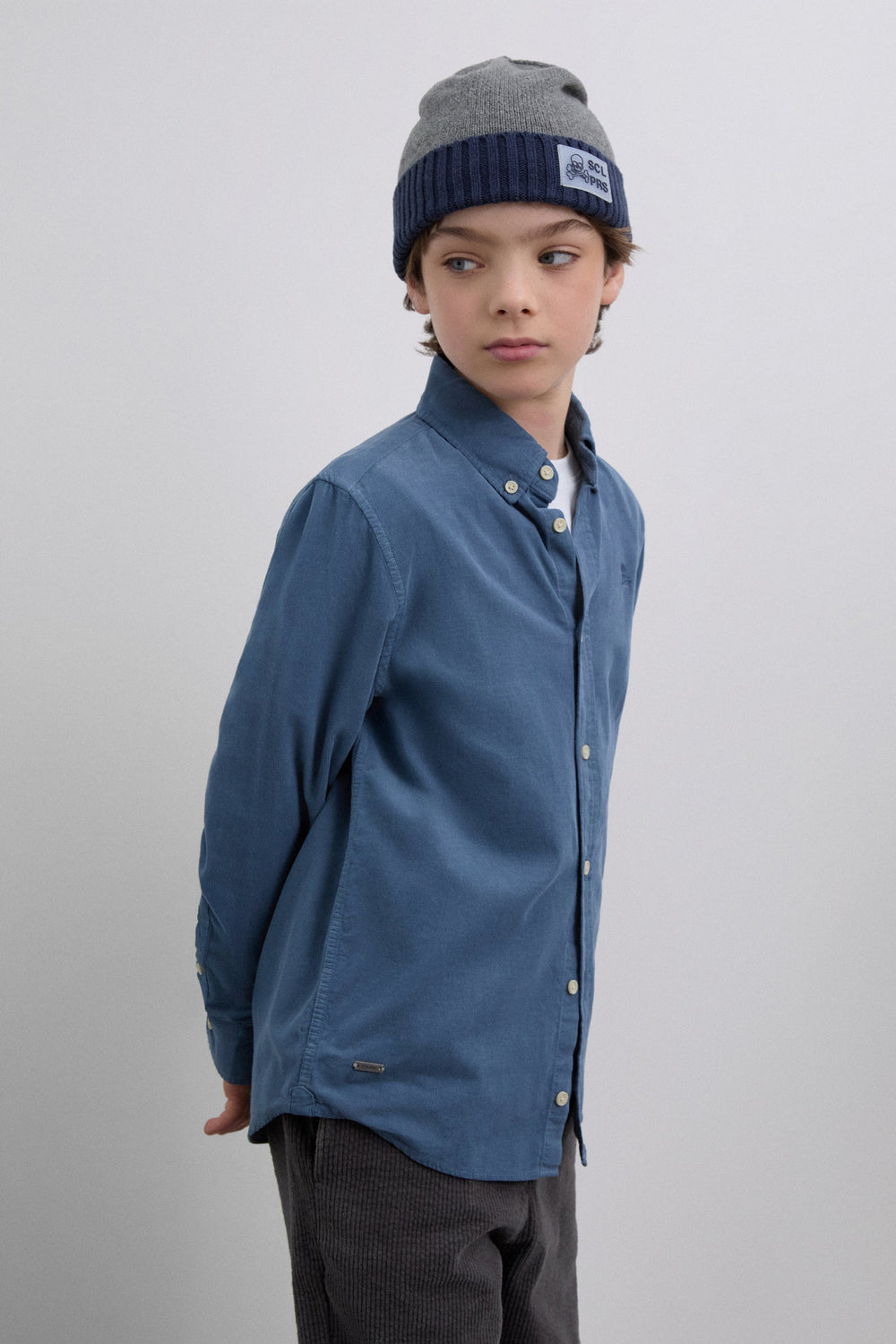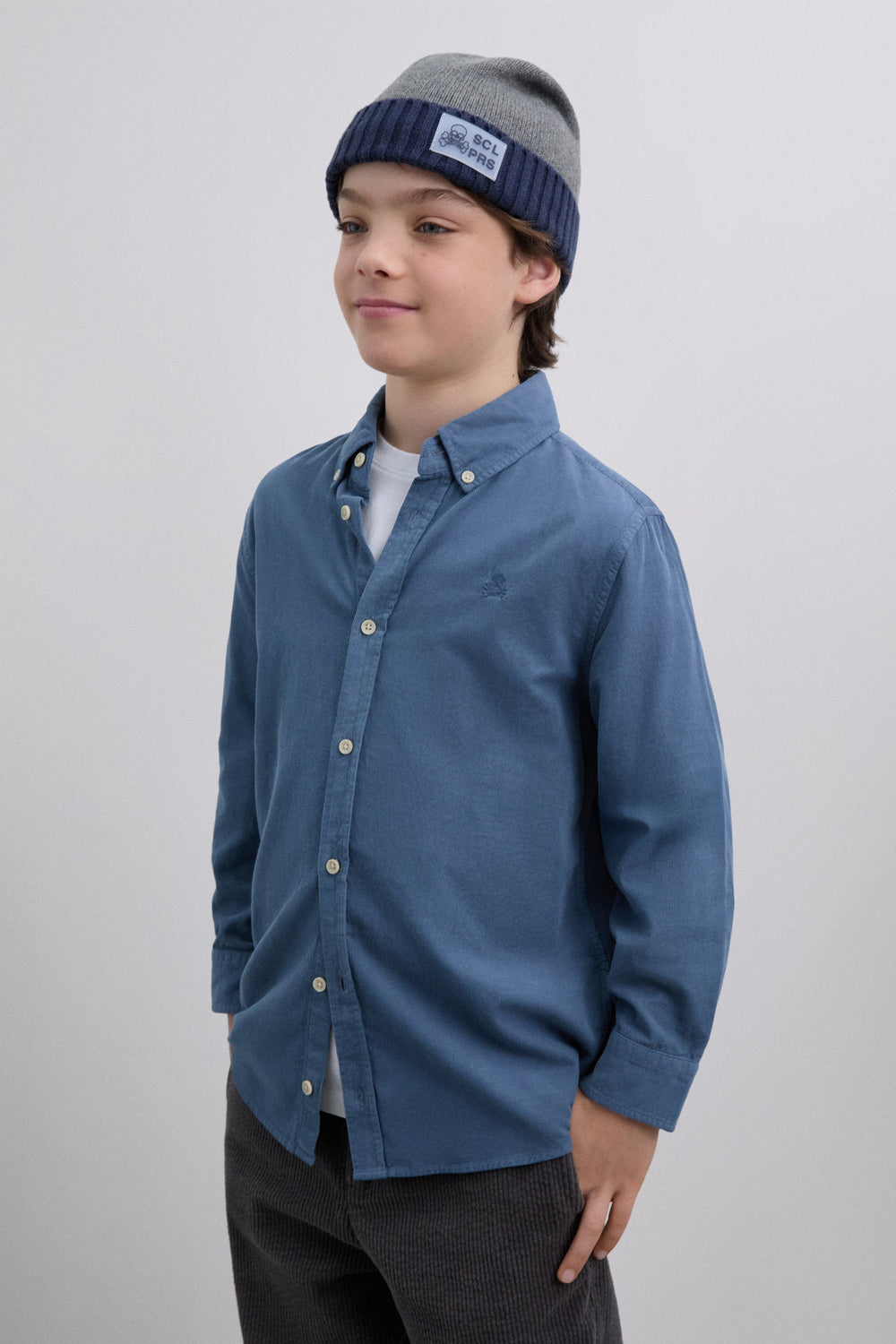 Oxford shirt made of 100% BCI cotton. Regular Fit. Classic collar and button fastening. Long sleeves with buttoned cuffs. Embroidered contrast skull on the chest. Detail of metallic lower front label with logo.