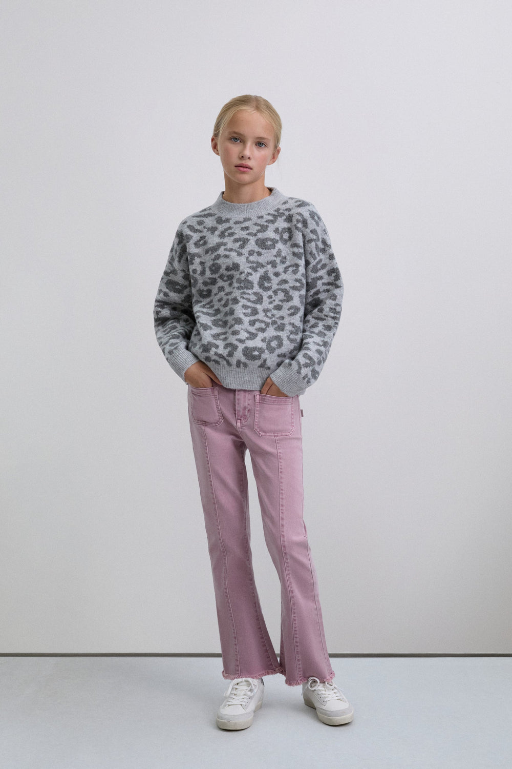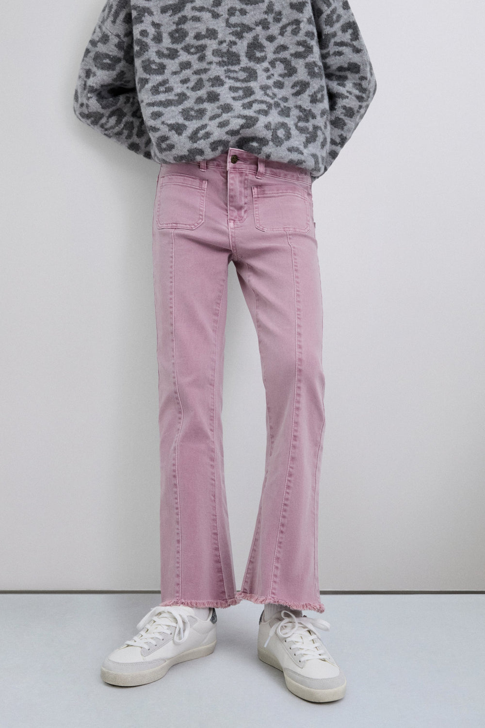 Flared trousers made of BCI cotton. Button and zip fastening. Belt loops at the waist. Front and back pockets. Seam detail on the front. Side slit and frayed hems.