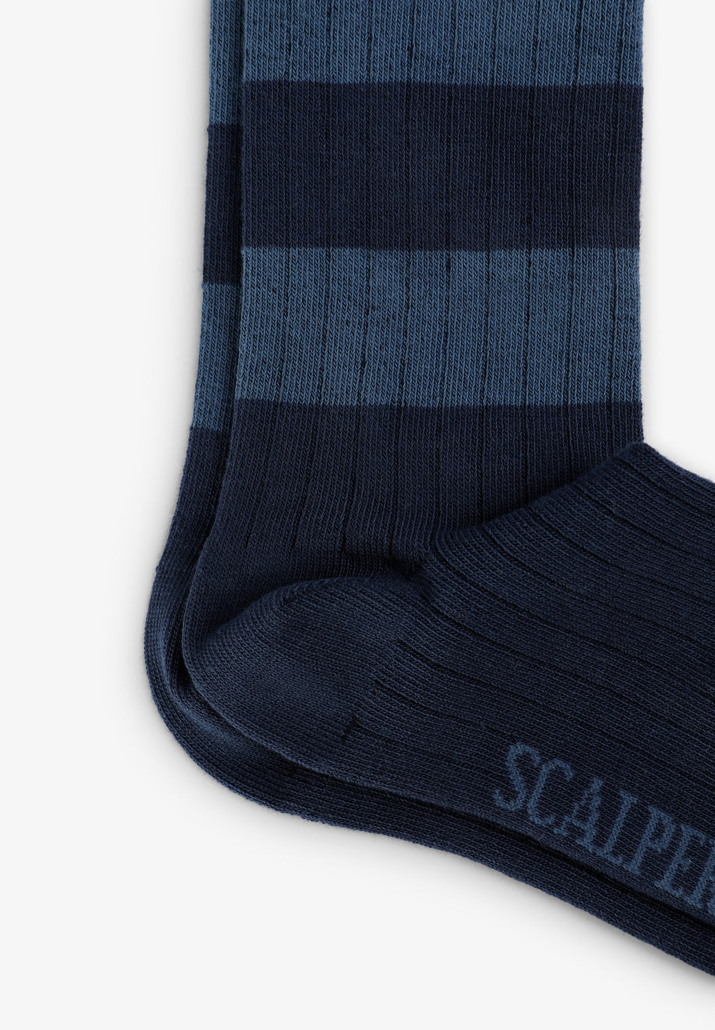 Socks made of an organic cotton blend. Stripe print. Contrast embroidered skull detail. Contrast logo detail on the bottom.