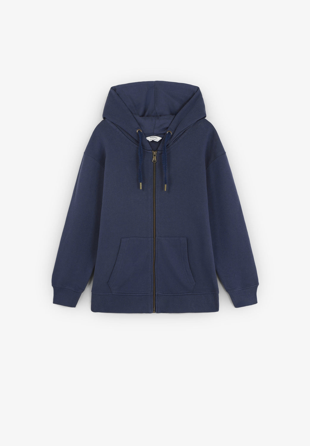 Sweatshirt made of 100% BCI cotton. Hood. Long sleeves. Ribbed trim. Front zip fastening and front pockets. Embroidered logo on the back.
