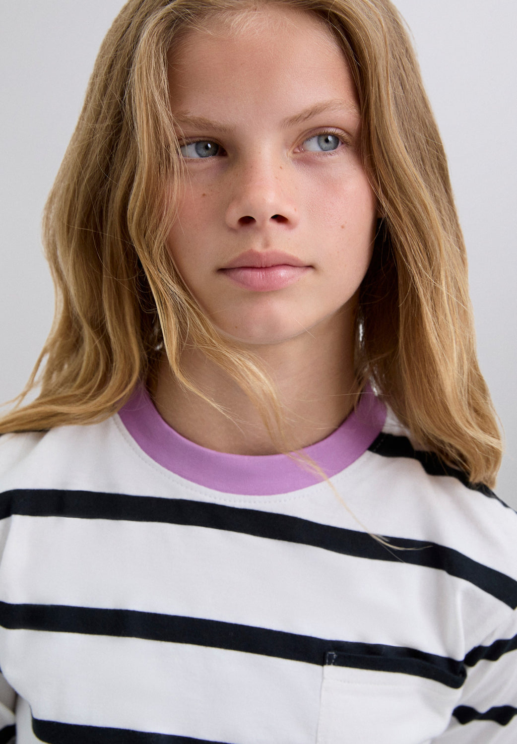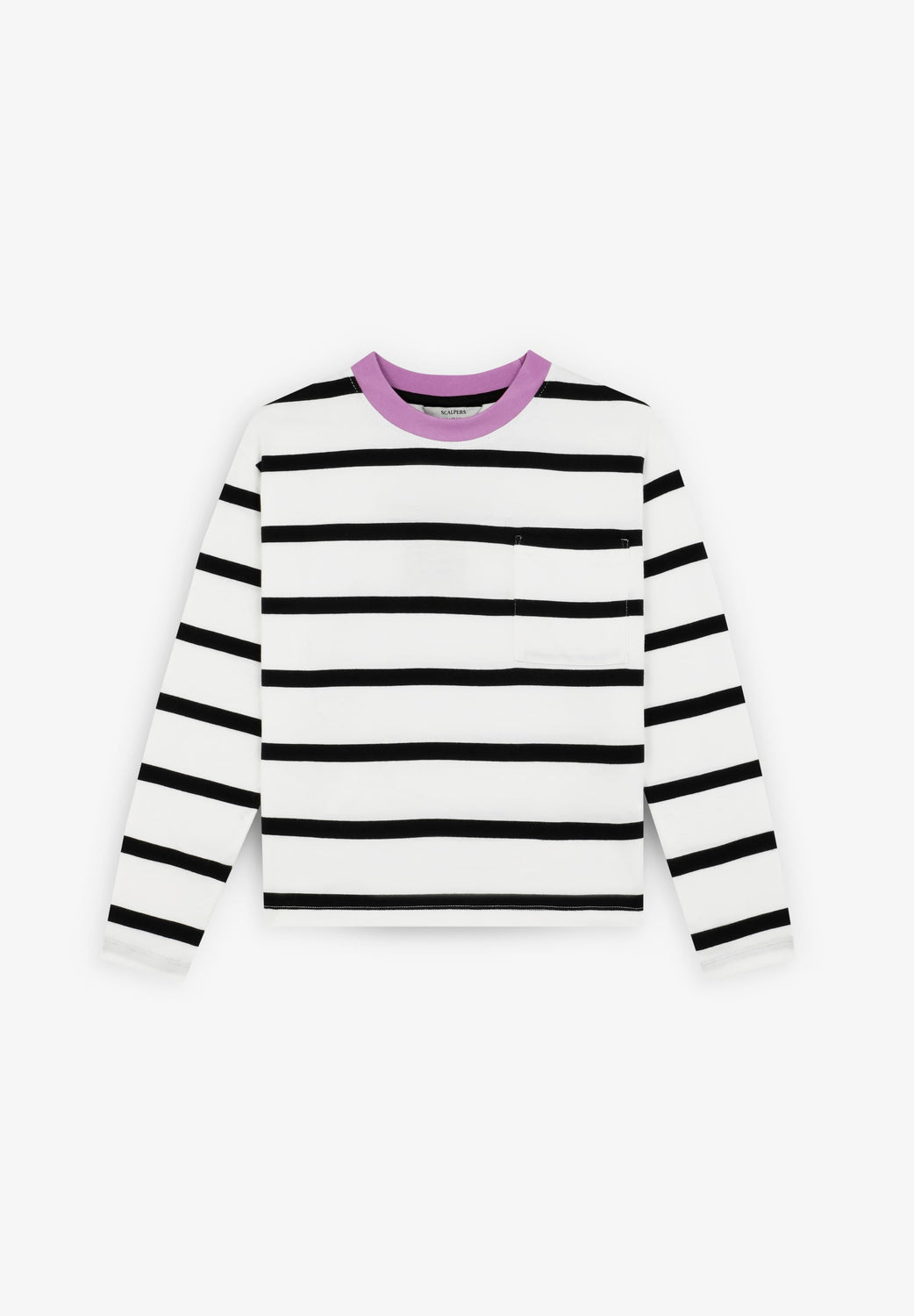Striped T-shirt made of 100% BCI cotton. Regular fit, contrast round neck and long sleeves. Chest pocket detail and logo label on back.