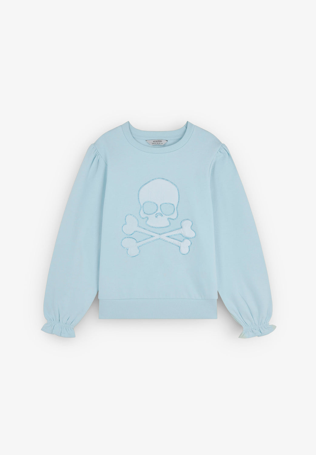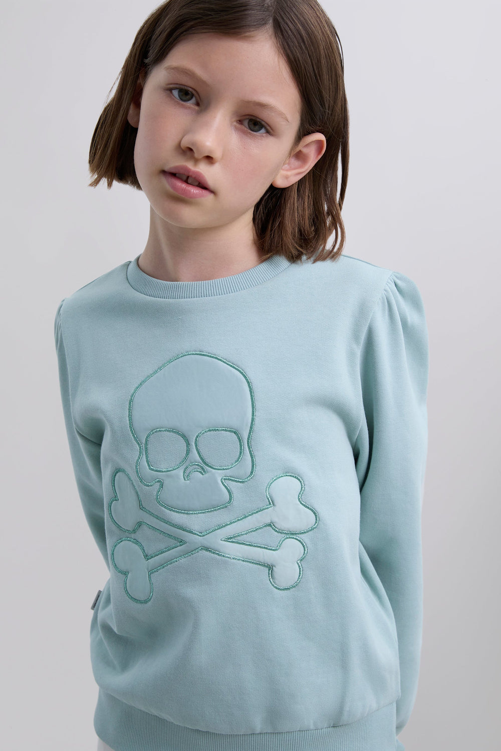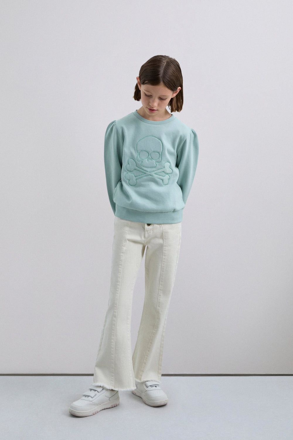 Sweatshirt made of 100% BCI cotton. Round neck. Embroidered skull on the front. Long sleeves. Gathered detail on elasticated cuffs