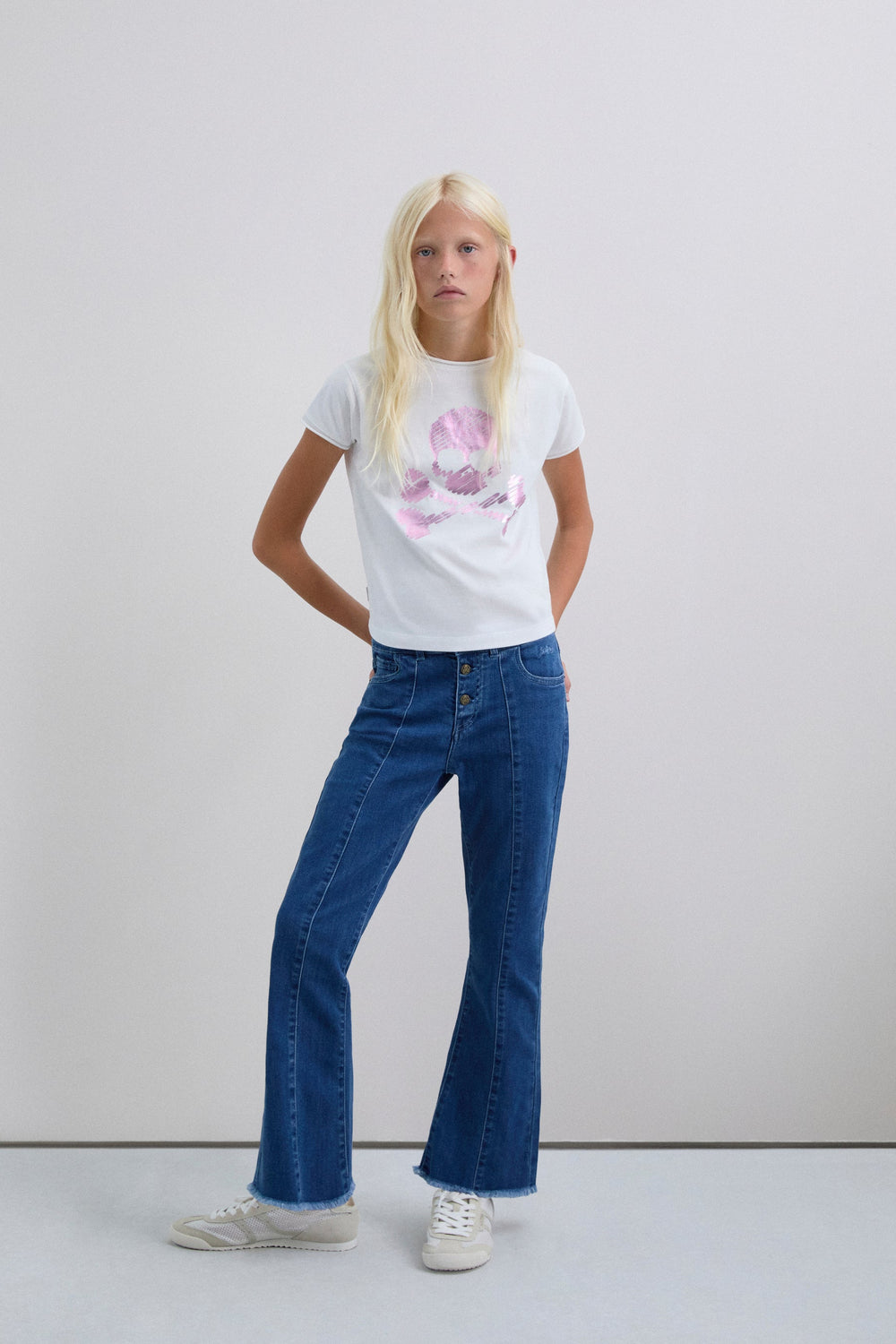 T-shirt made of 100% BCI cotton. Short sleeve. Round neck. Reflective print on front. Embroidery on back of neck. Label detail on the side.