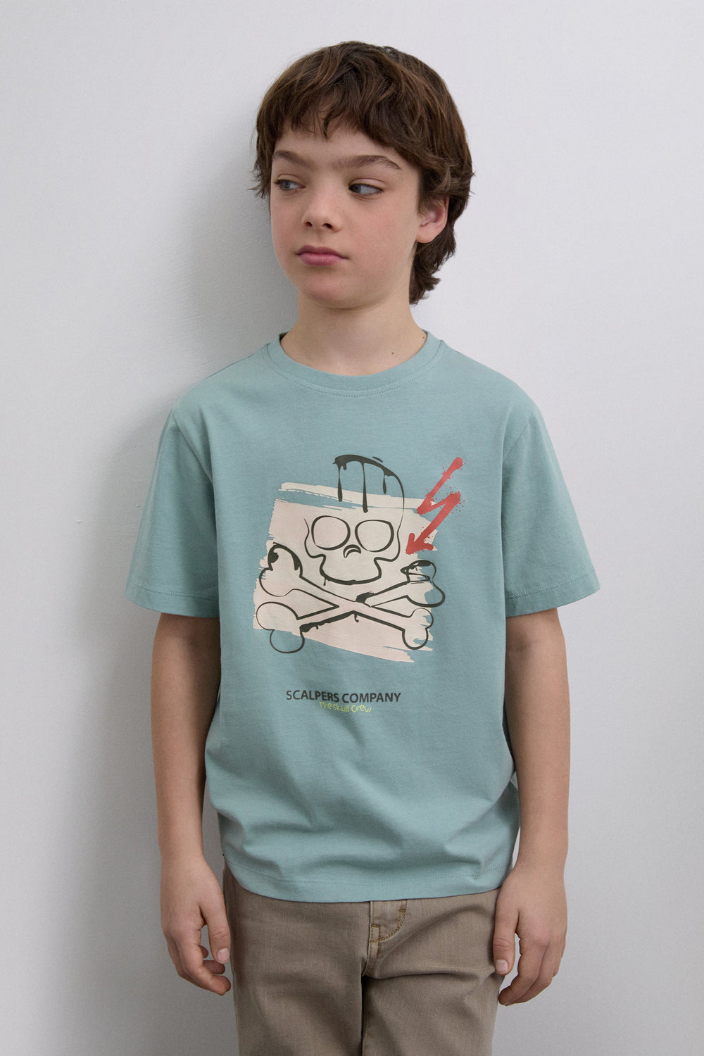 T-shirt made of 100% BCI cotton. Regular Fit. Short sleeve. Front print with logo and skull. Round neck.