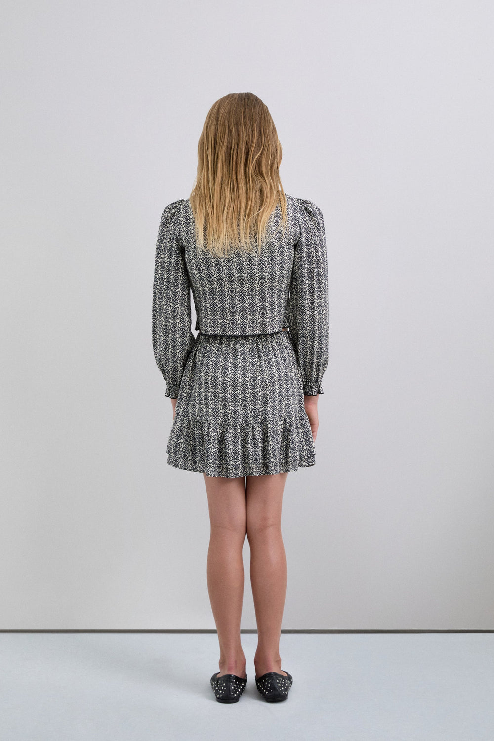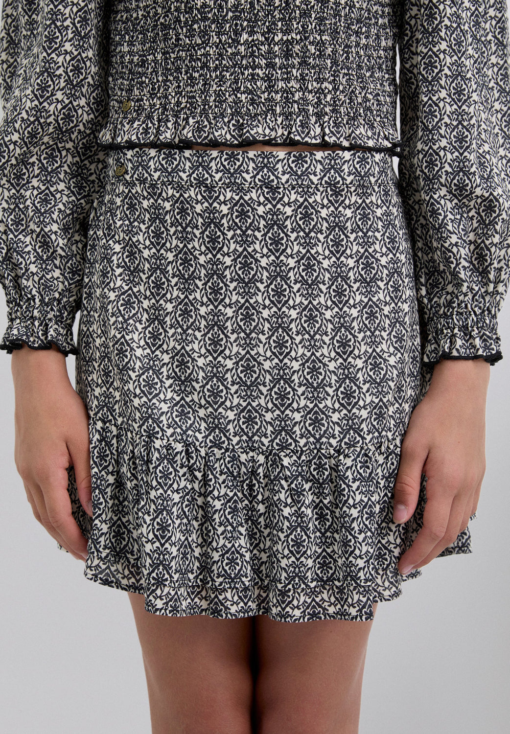 Printed mini skirt made of 100% viscose. Side fastening and ruffles at the hem.