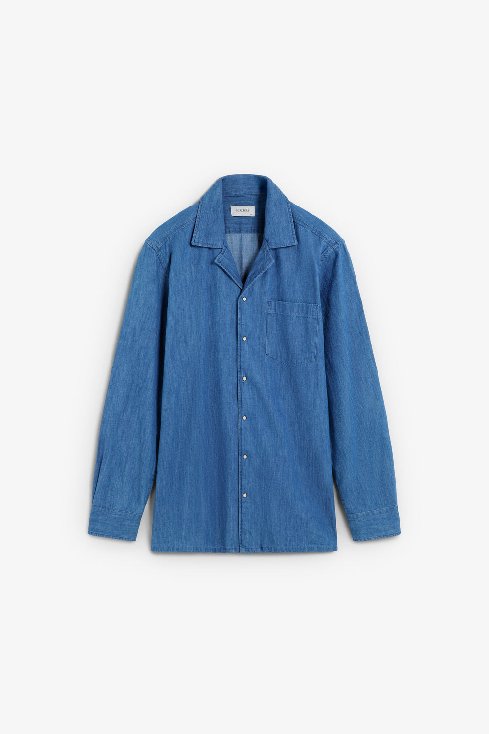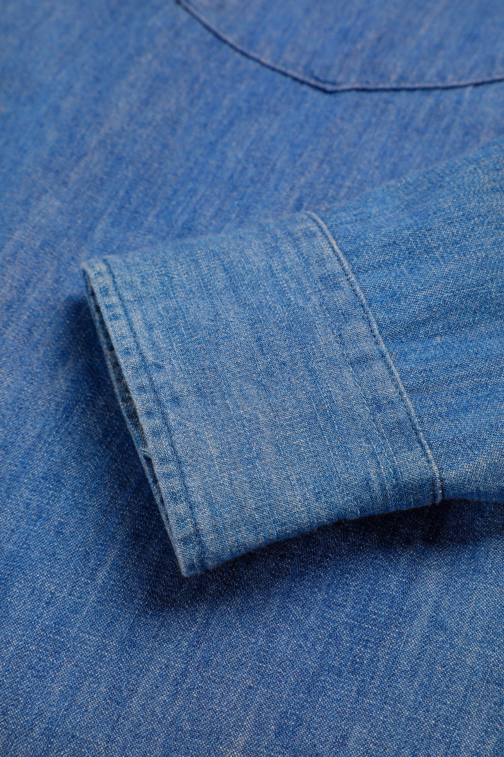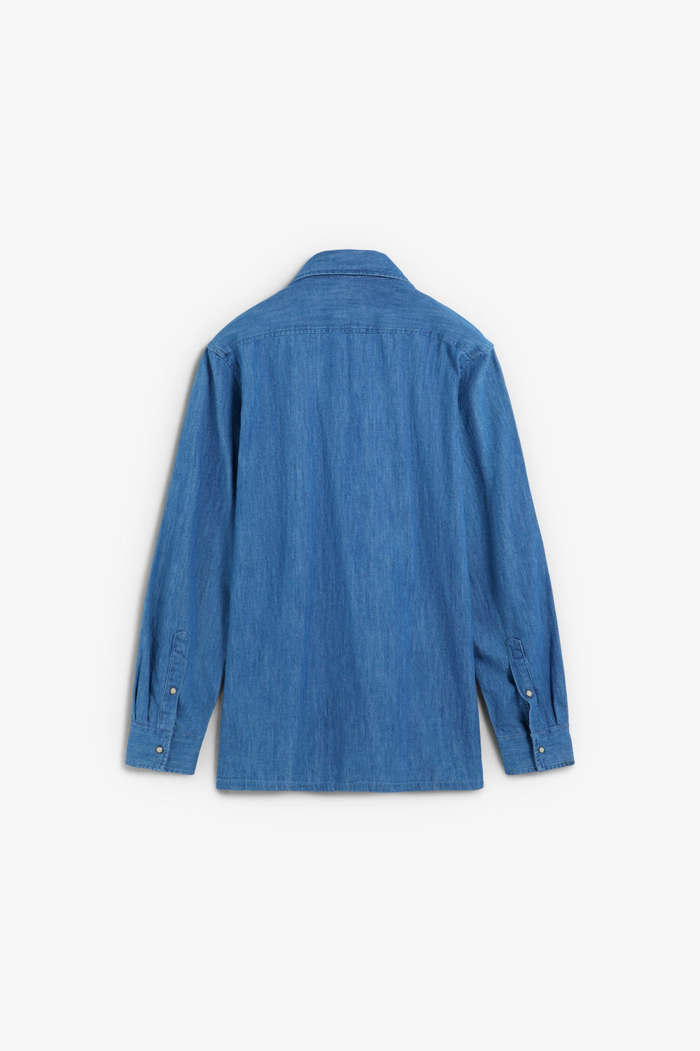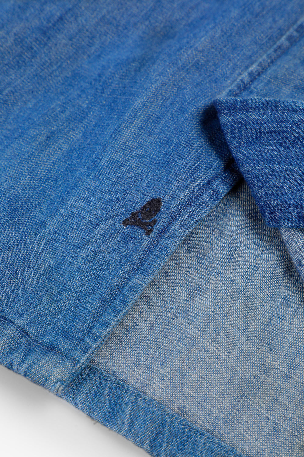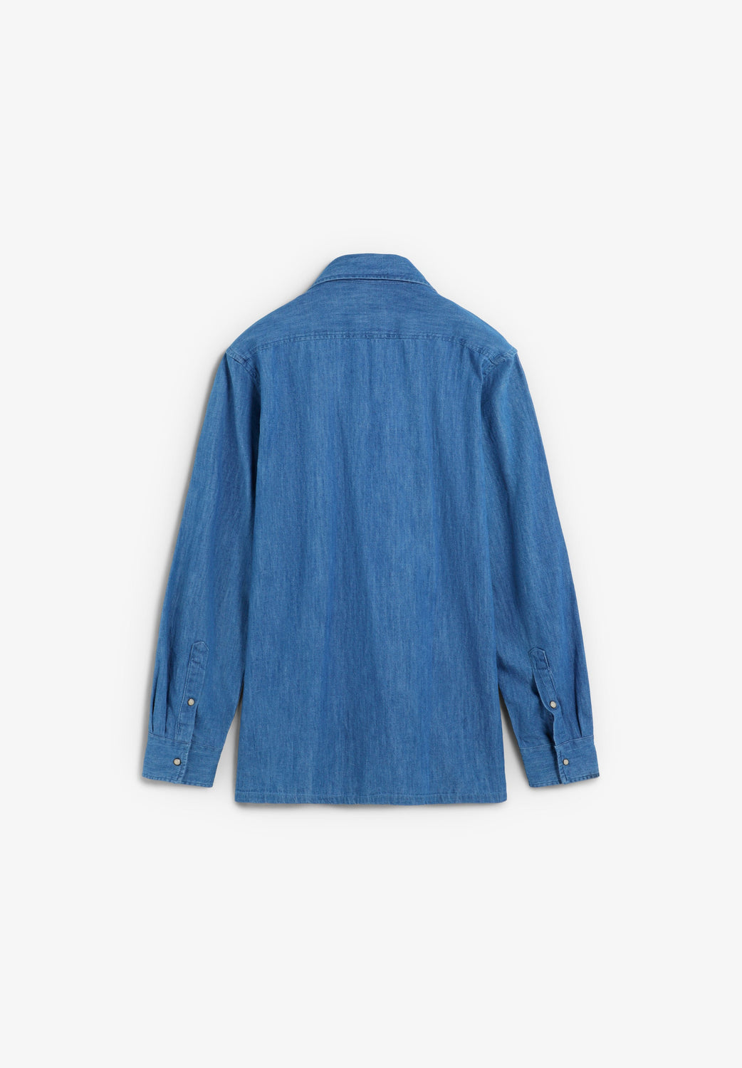 Denim shirt made of 100% BCI cotton. Regular fit. Shirt collar. Button-up front. Long sleeves. Buttoned cuffs. Chest pocket. Embroidered logo detail on the placket.