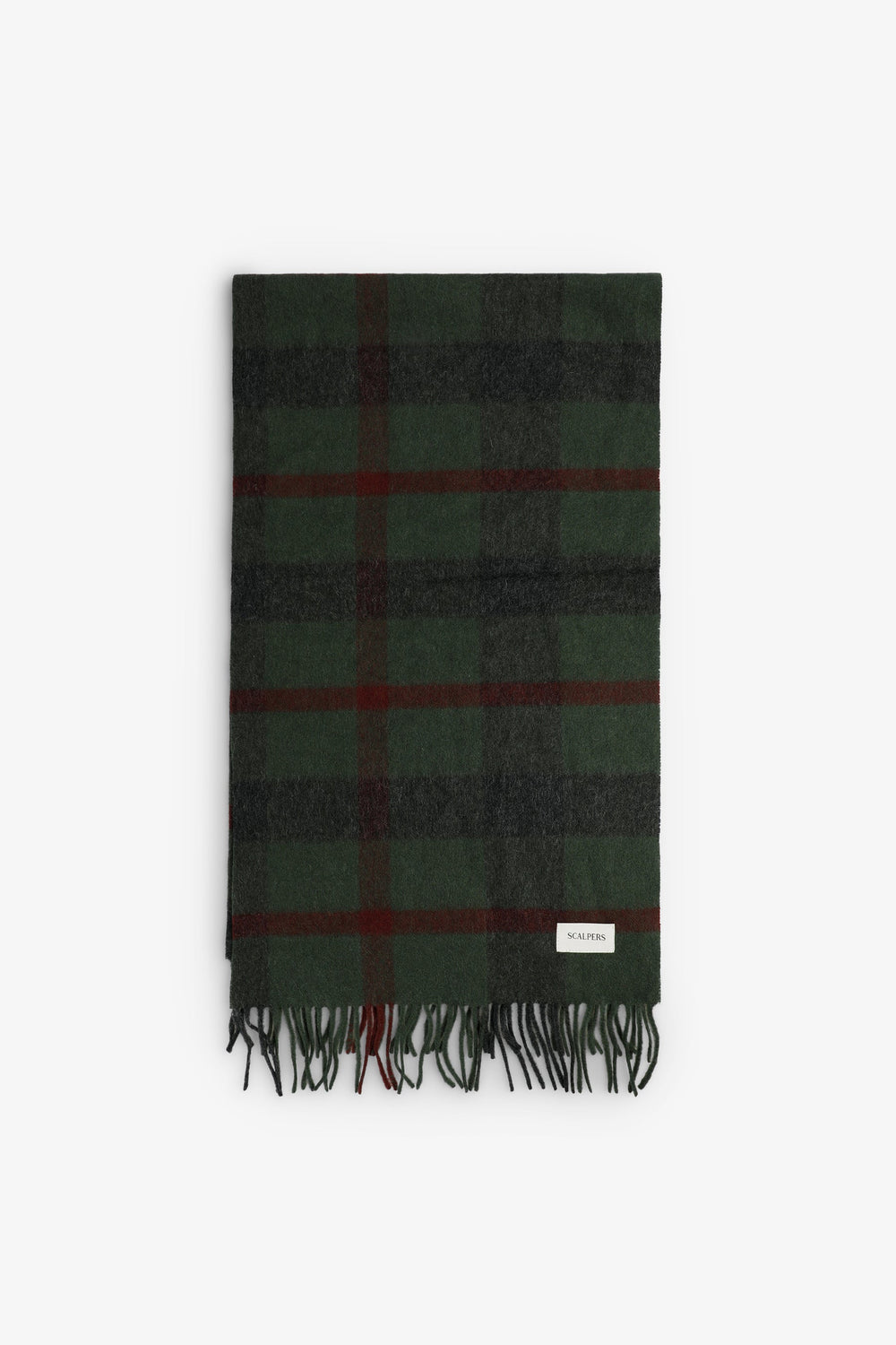 Scarf made of a wool and cashmere blend. Tartan print. Fringing. Embroidered logo. Label detail.