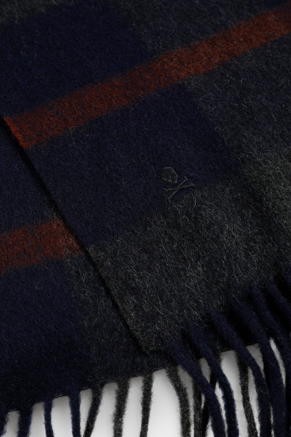 Scarf made of a wool and cashmere blend. Tartan print. Fringing. Embroidered logo. Label detail.