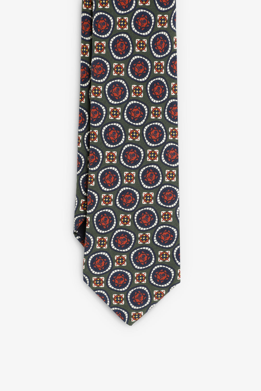 100% silk tie with geometric logo print and lined, 7.5 cm wide.