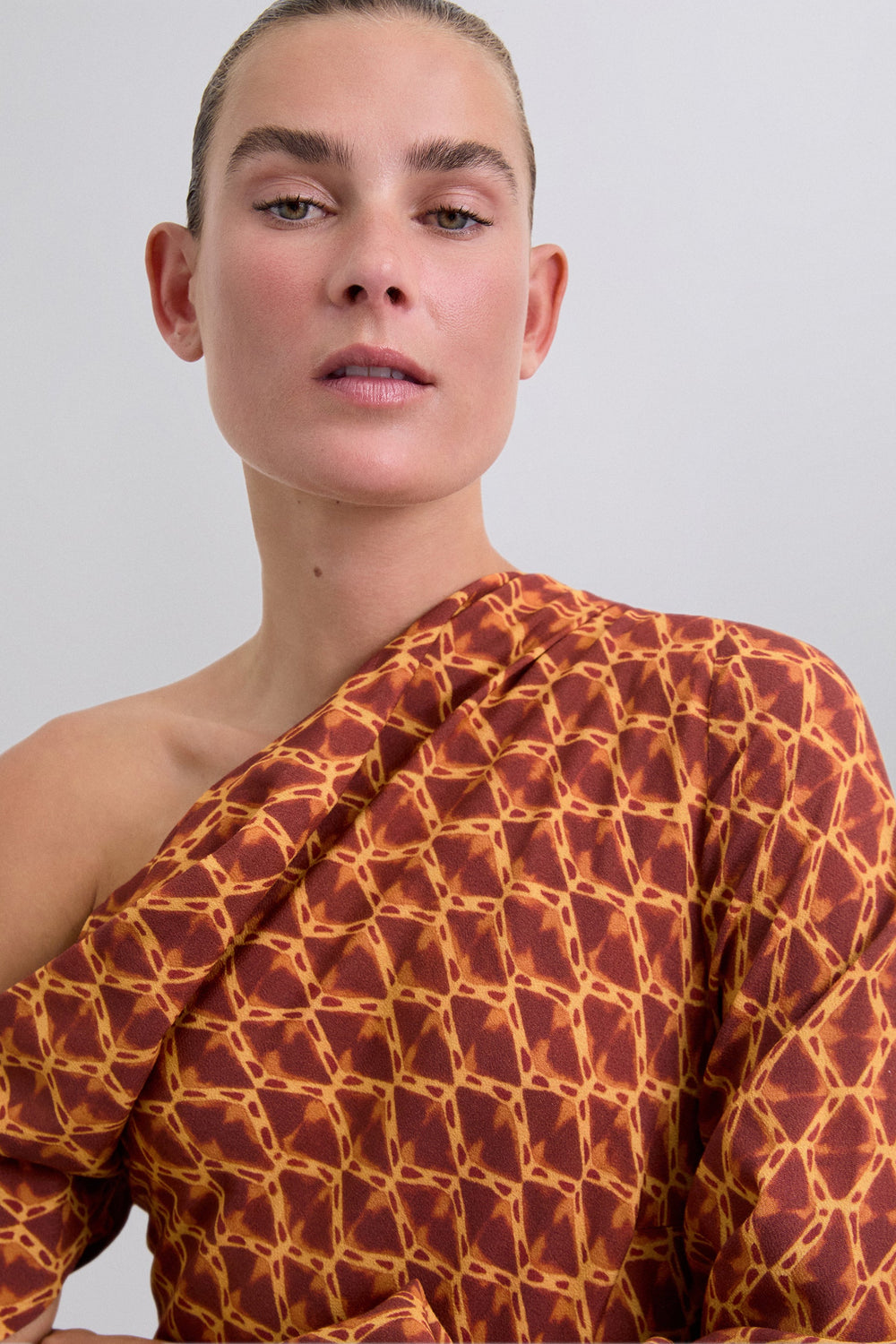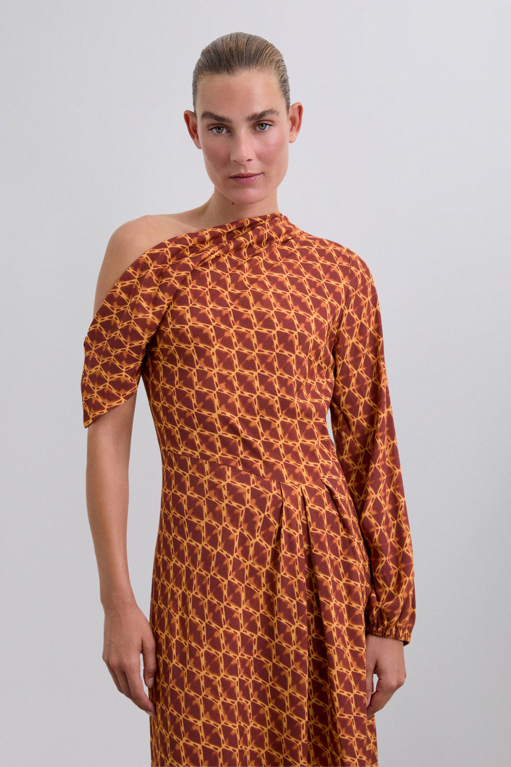 PRINTED ASYMMETRIC NECKLINE DRESS