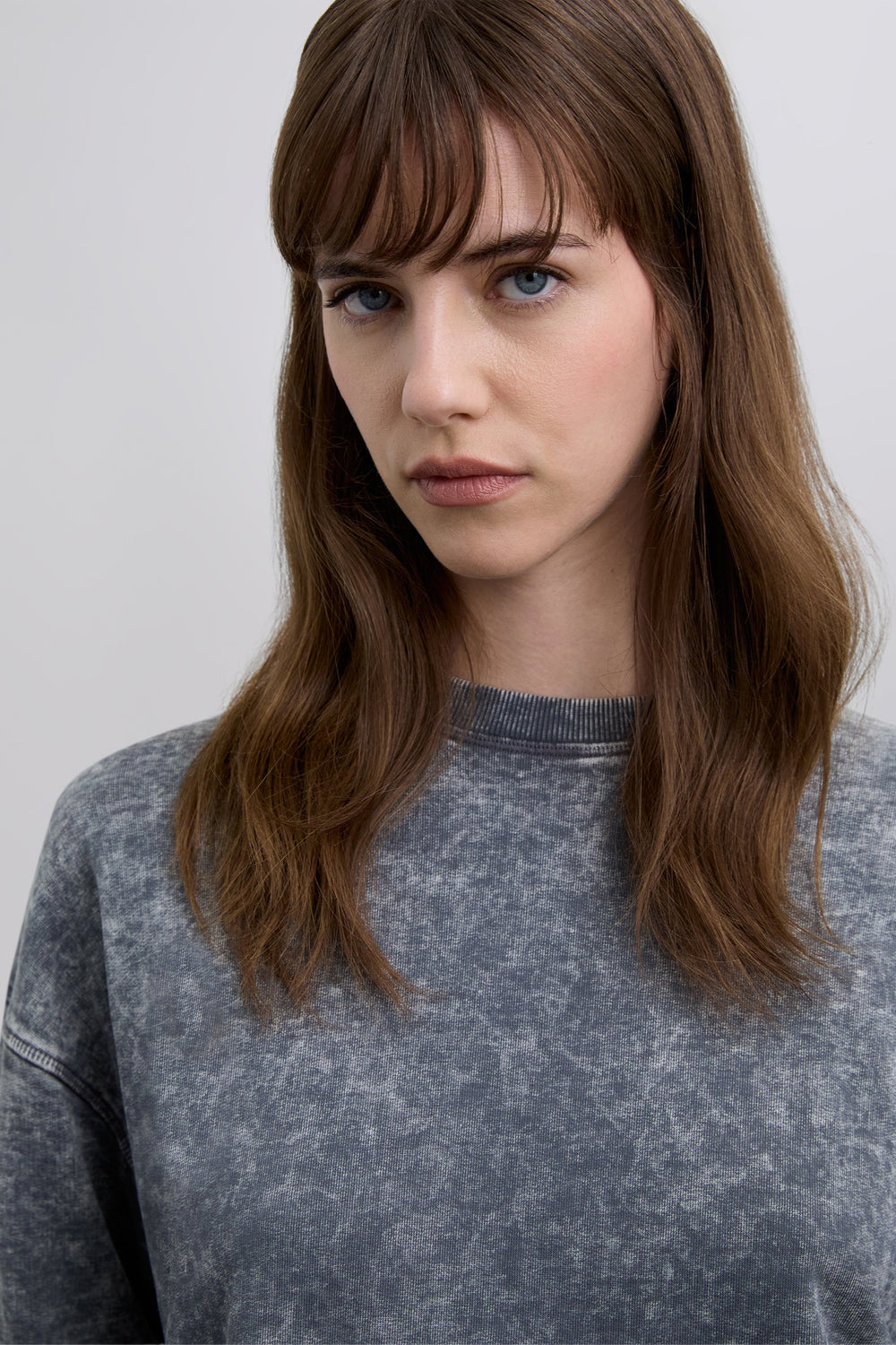 Sweatshirt made of 100% organic cotton with marble effect print. Regular fit, round neck and long sleeves with ribbed cuffs.