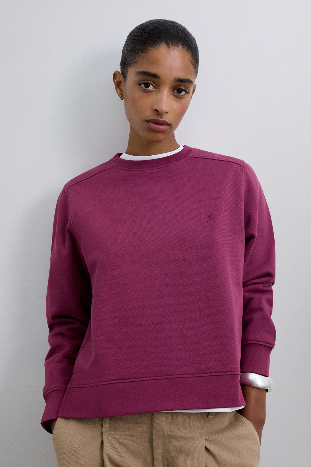 Sweatshirt made of 100% organic cotton. Regular fit, round neck and long sleeves with ribbed cuffs. Asymmetric hem, longer back. Embroidered skull detail on the chest.