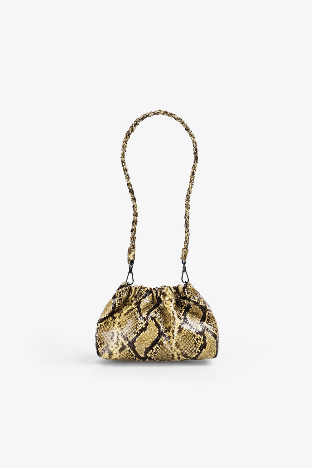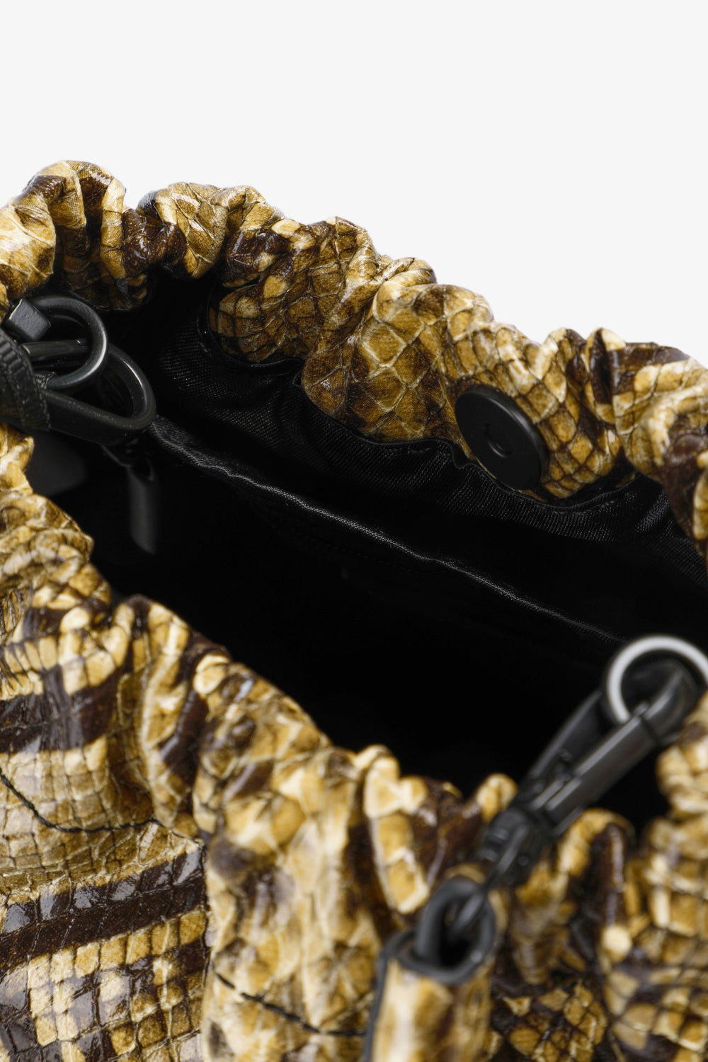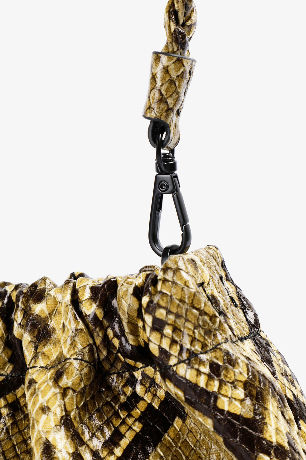 Handbag made in PU with animal print. Inner lining, removable double long handle. Magnetic button fastening.