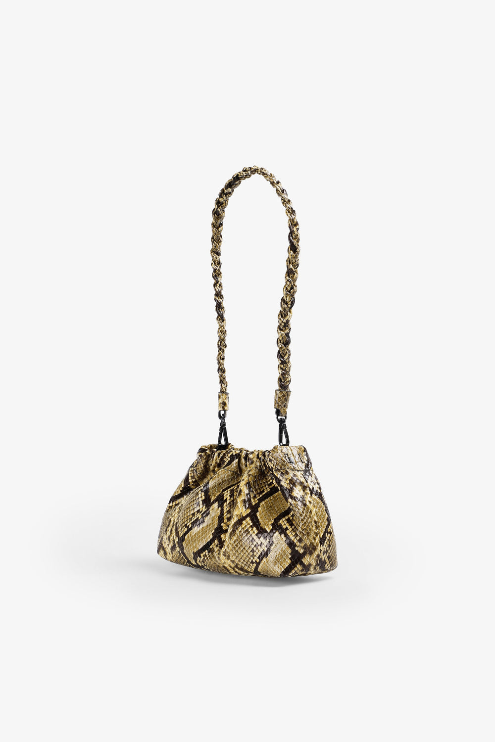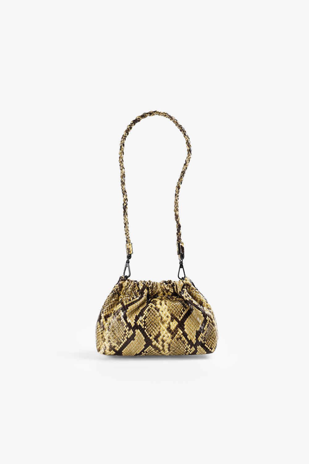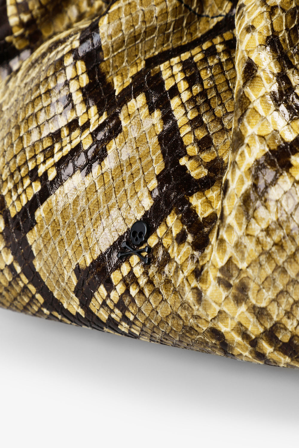 Handbag made in PU with animal print. Inner lining, removable double long handle. Magnetic button fastening.