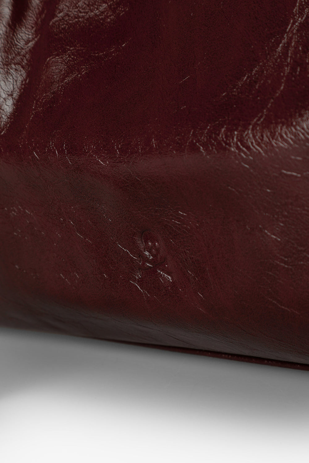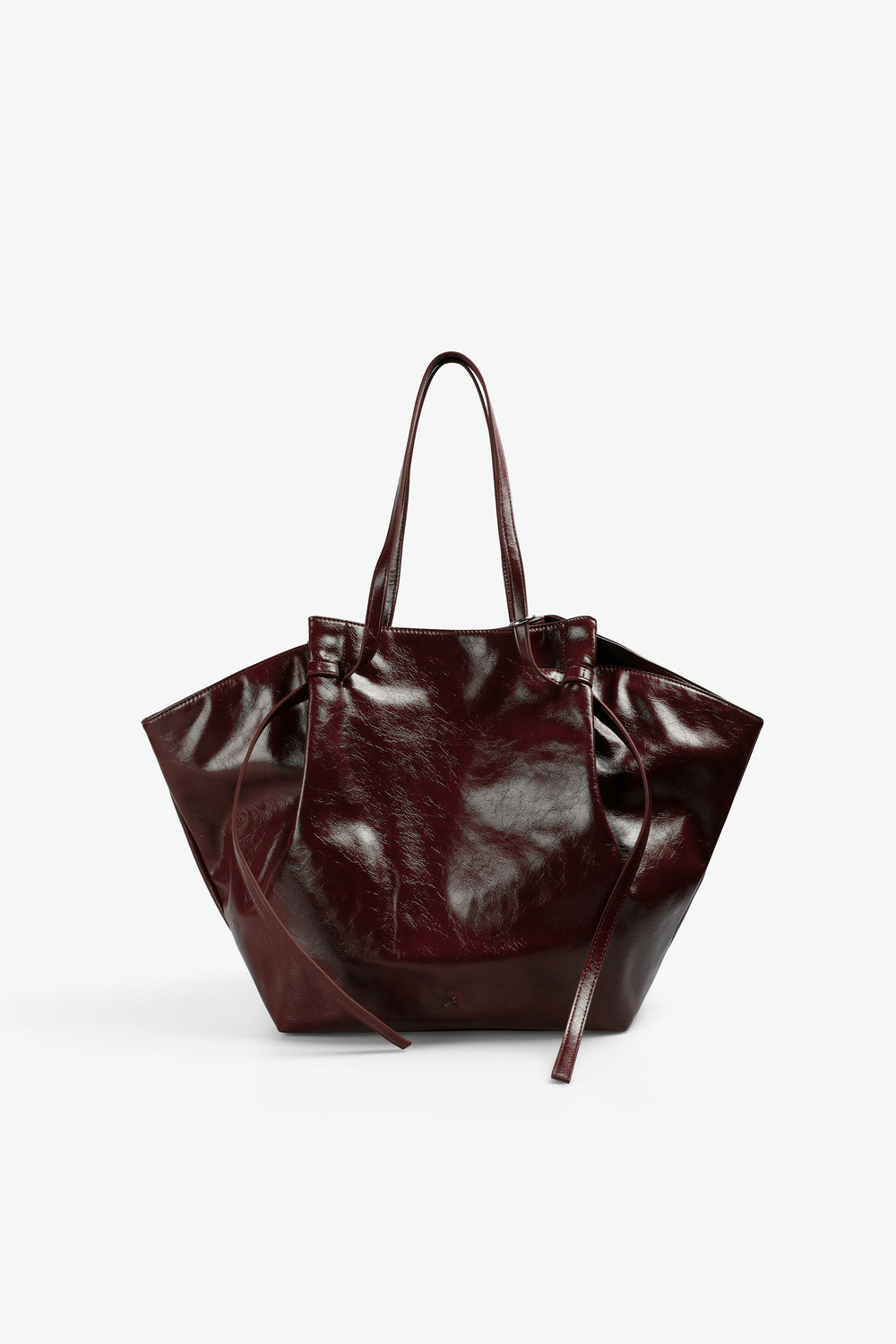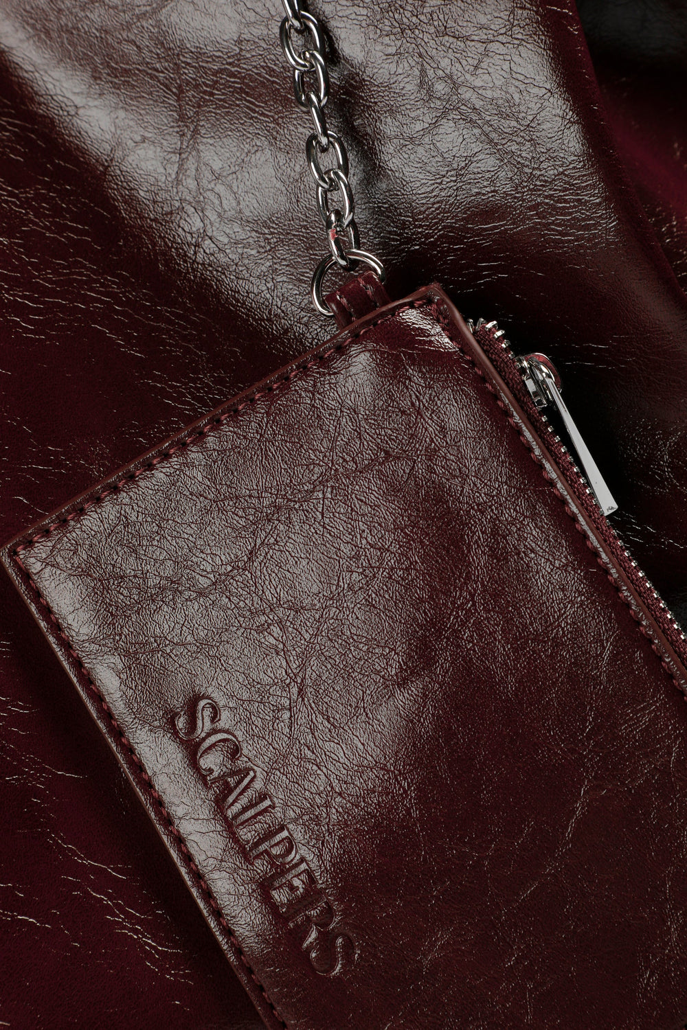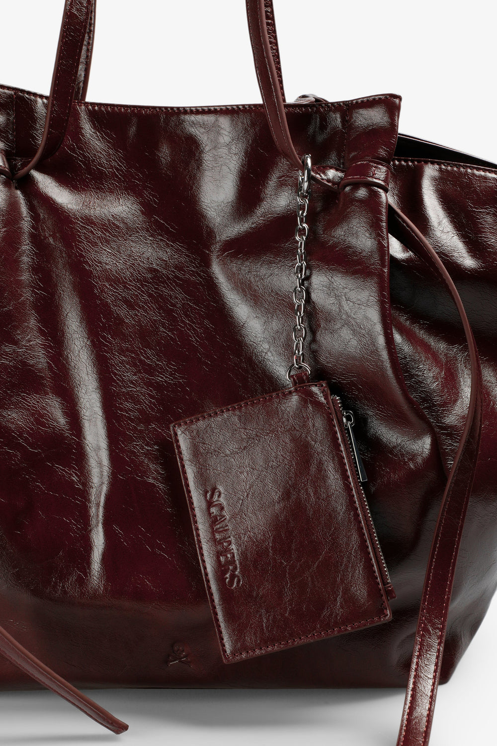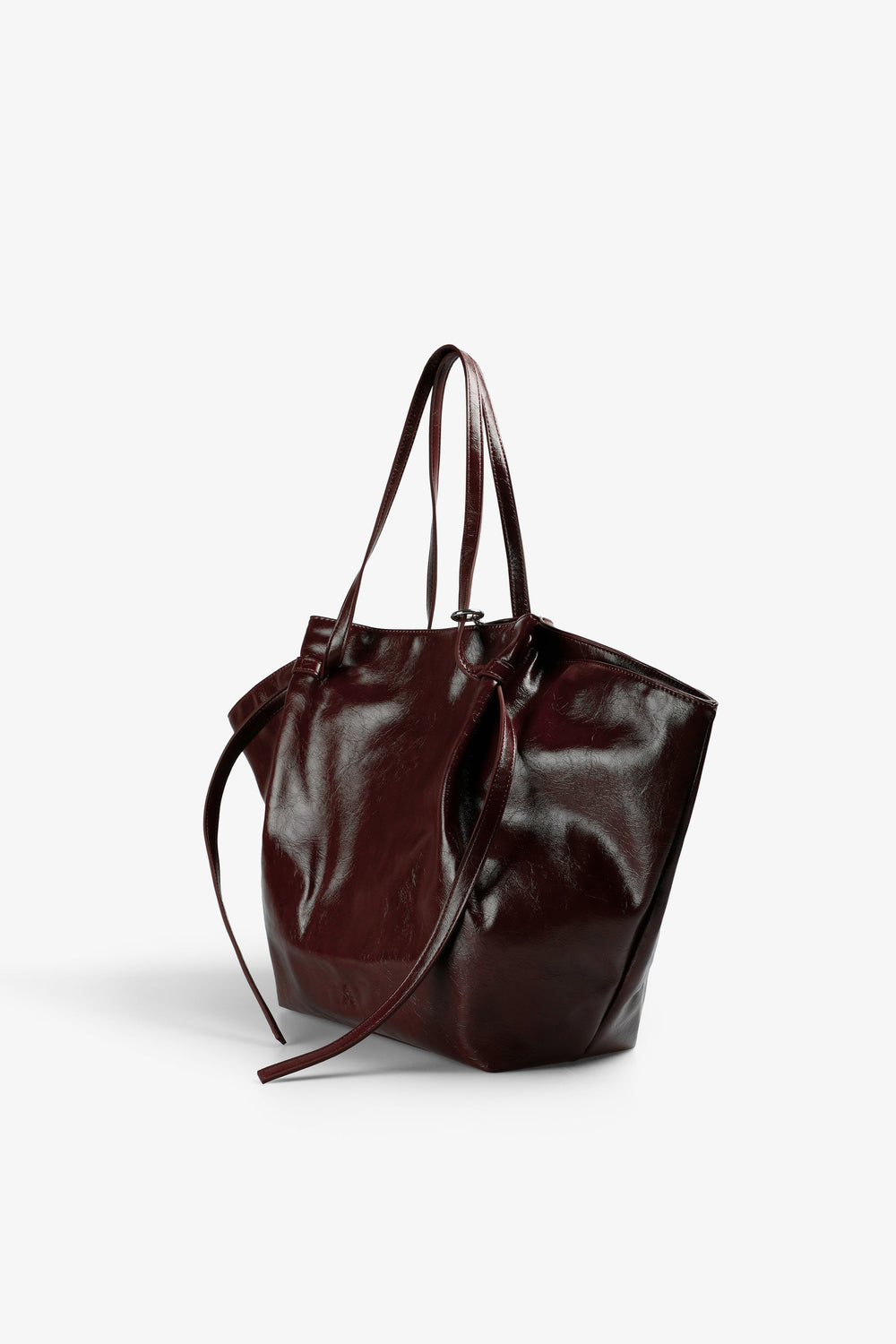 PU tote bag. Lined. Double zipped pocket. Adjustable side straps. Matching wallet inside