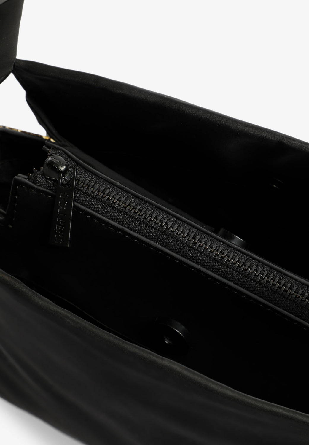 Bag made of a cotton and TPU blend. Double compartment inside with zip-up pocket in the centre. Magnetic button fastening. Double strap. Animal print details on the sides. Matching logo on front.