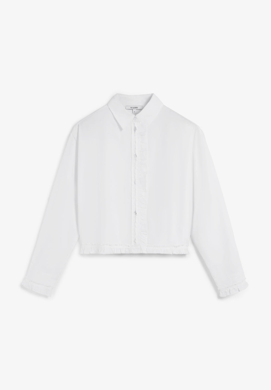 Shirt made of 100% BCI cotton. Cropped. Shirt collar. Gathered detail on the front placket, cuffs and hem. Button fastening. Long sleeves.