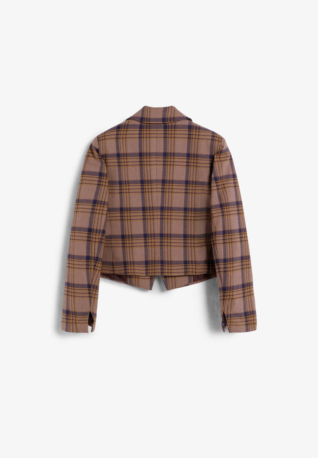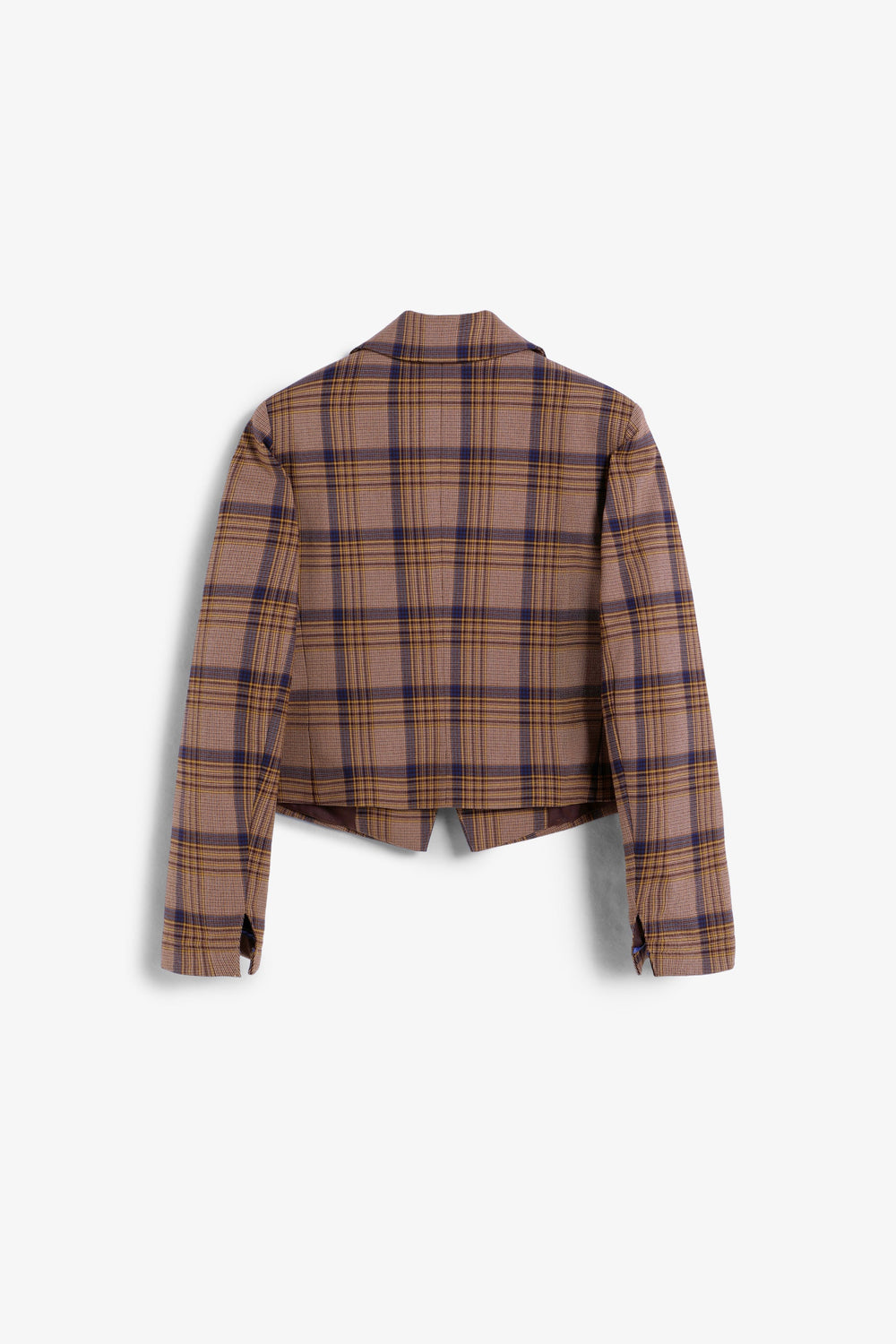 Cropped blazer with check print. Front flap pockets with flaps, large lapels and front button fastening. Welt chest pocket.
