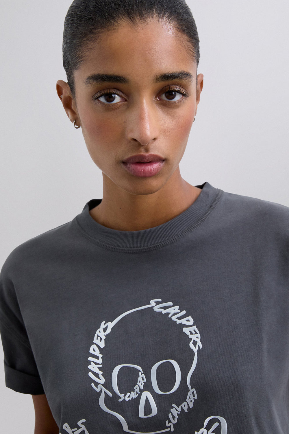 T-shirt made of 100% cotton. Regular fit. Front skull print. Round neck. Short sleeve. Stitching detail on the back.
