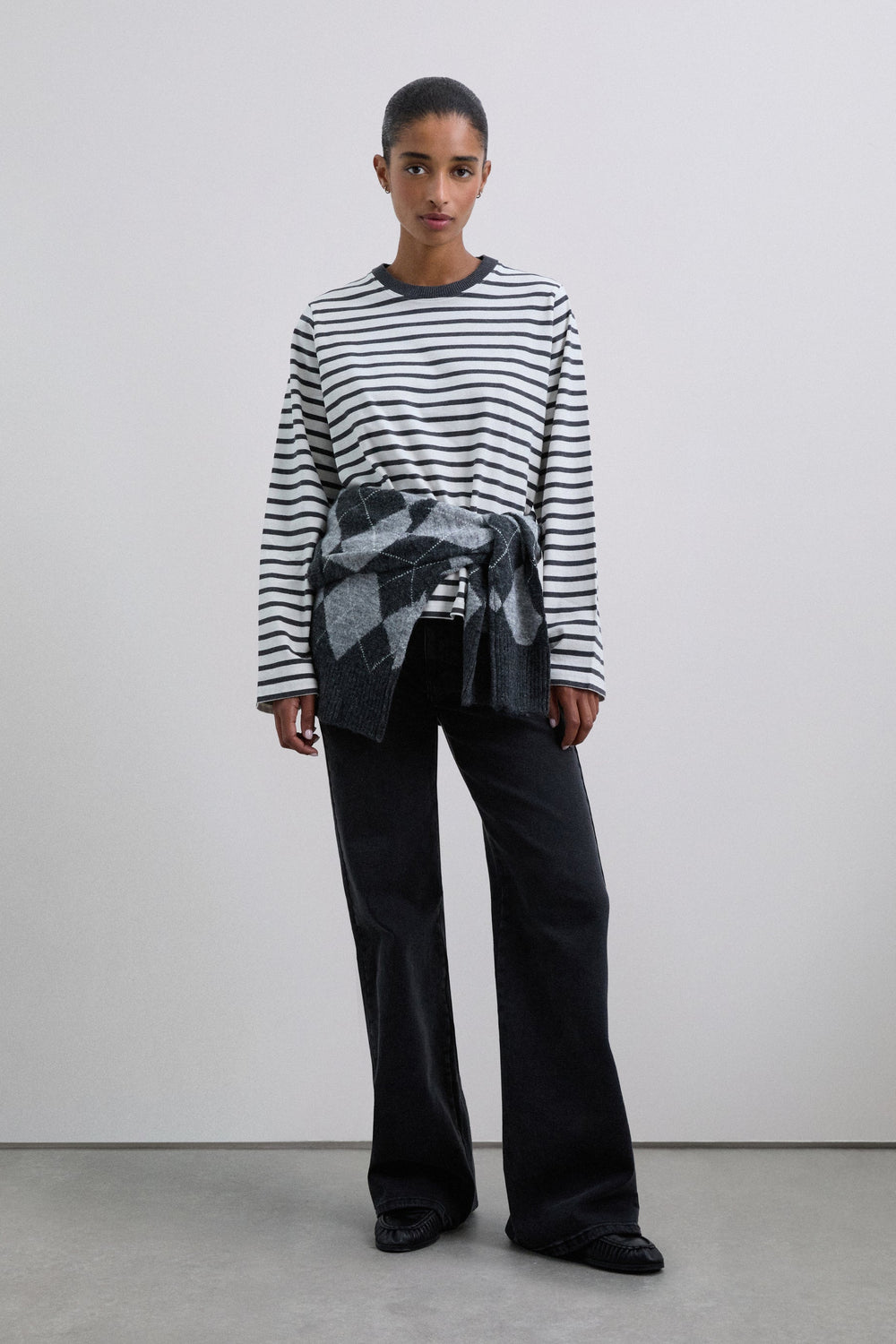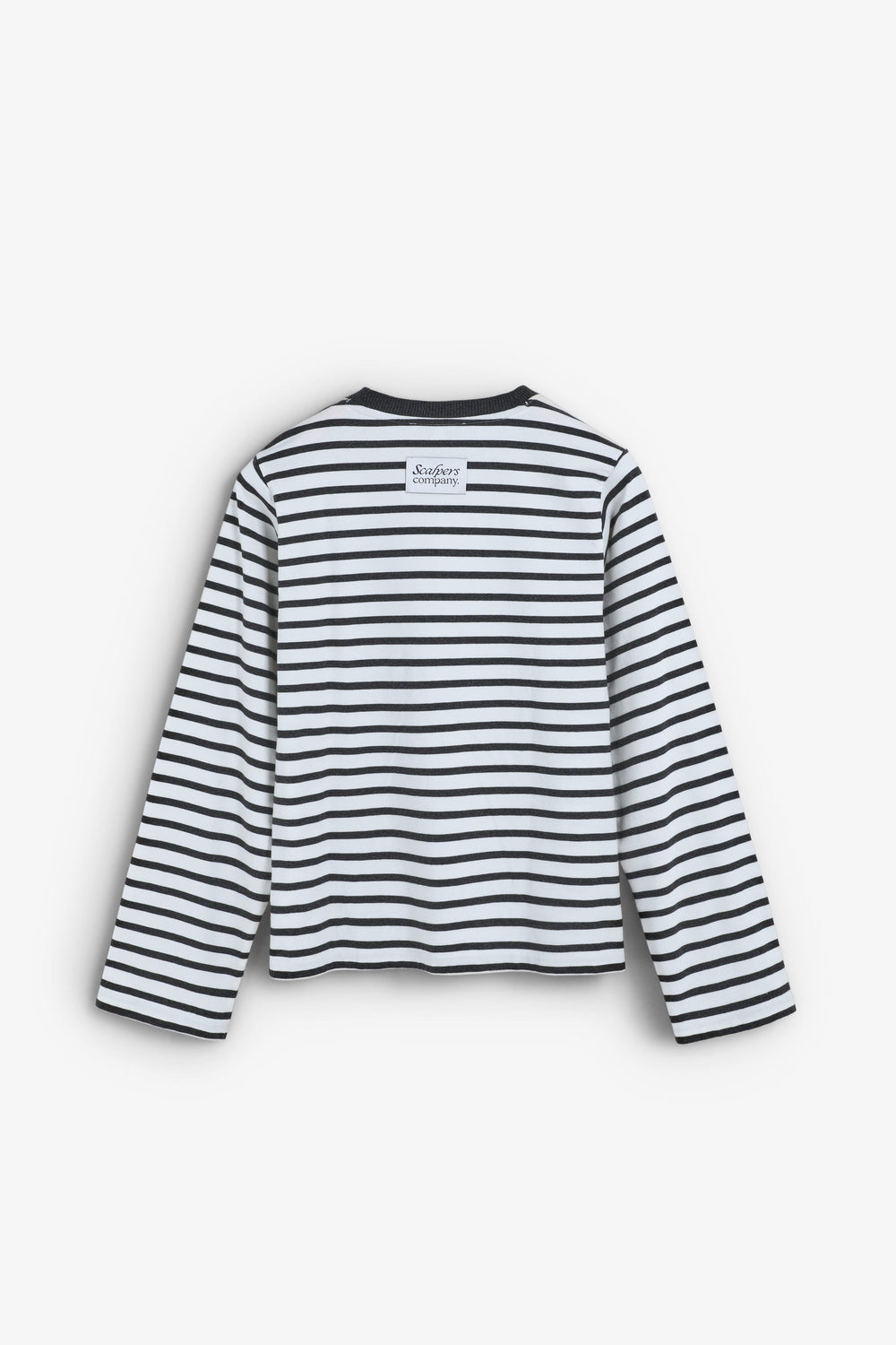 Striped T-shirt made of 100% BCI cotton. Long sleeves, regular fit. Piped collar detail.