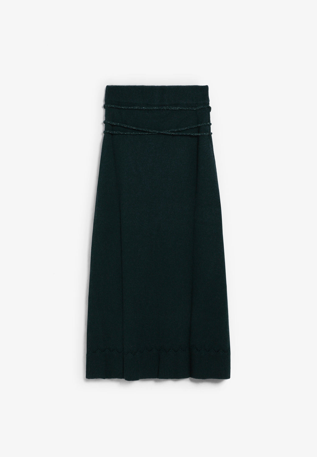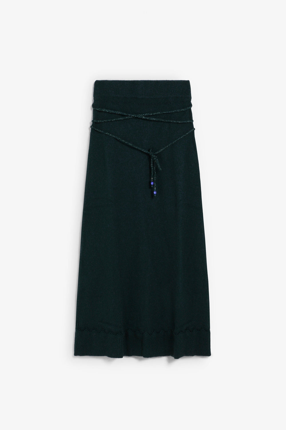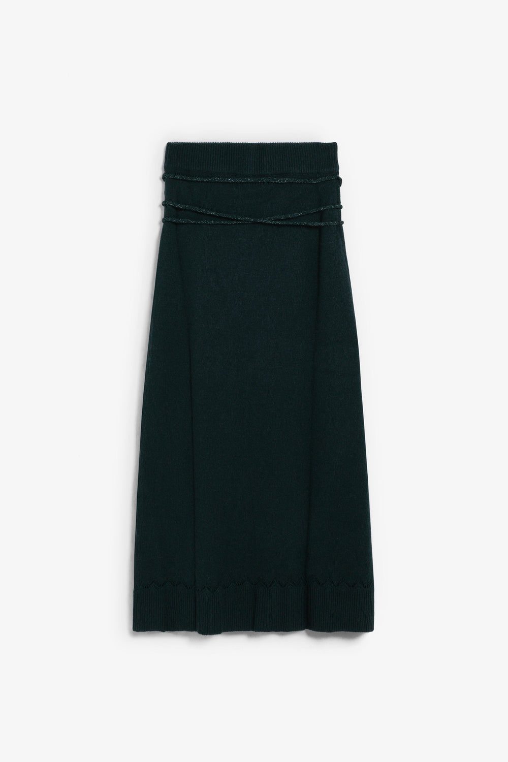 Knit skirt in a wool blend. Regular fit. Midi cut. Elasticated waistband. Drawstring detail with metallic thread and beading at the waist.