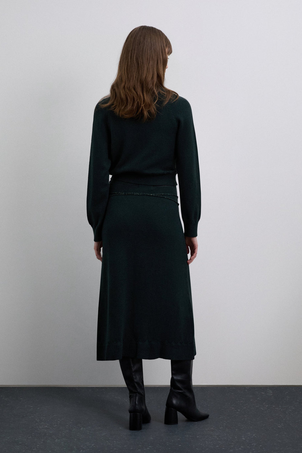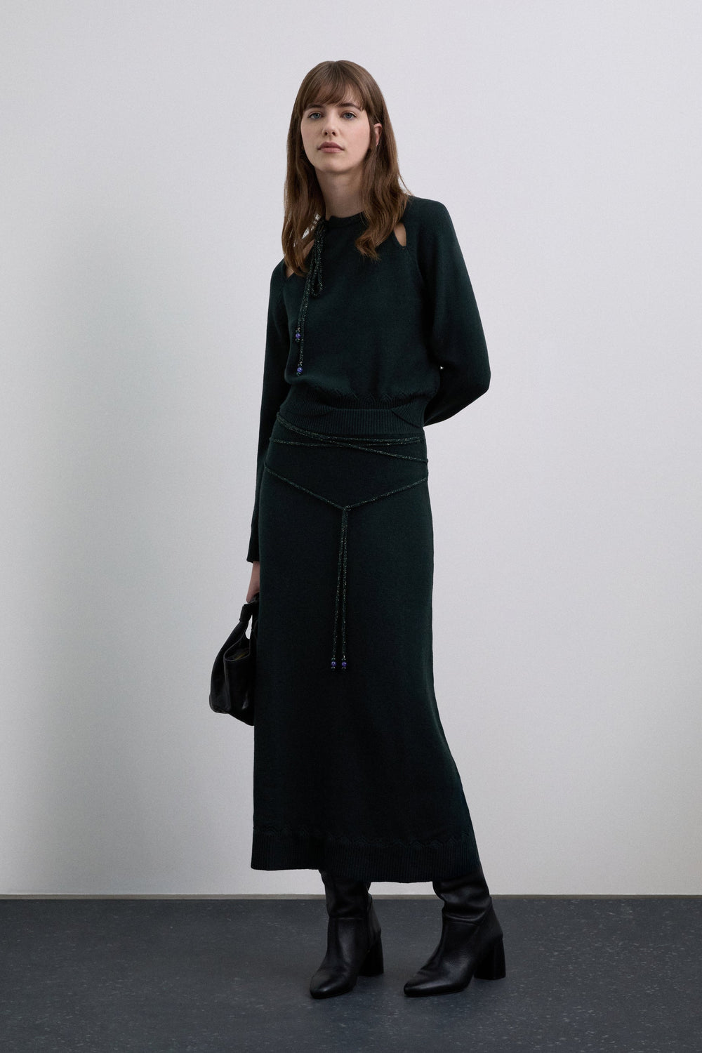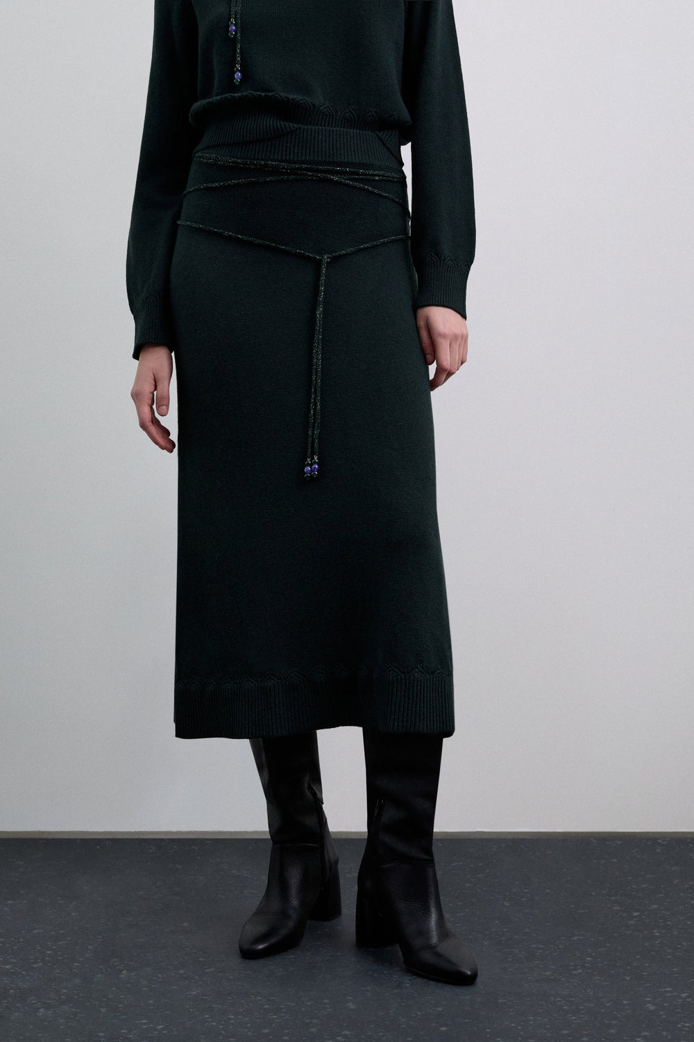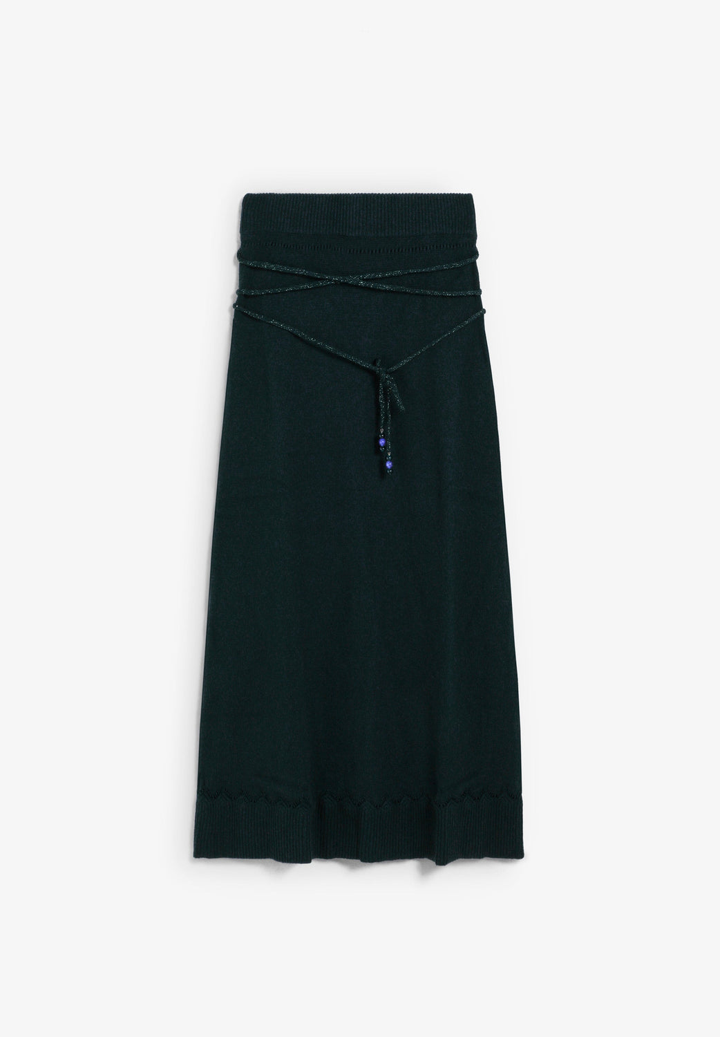 Knit skirt in a wool blend. Regular fit. Midi cut. Elasticated waistband. Drawstring detail with metallic thread and beading at the waist.