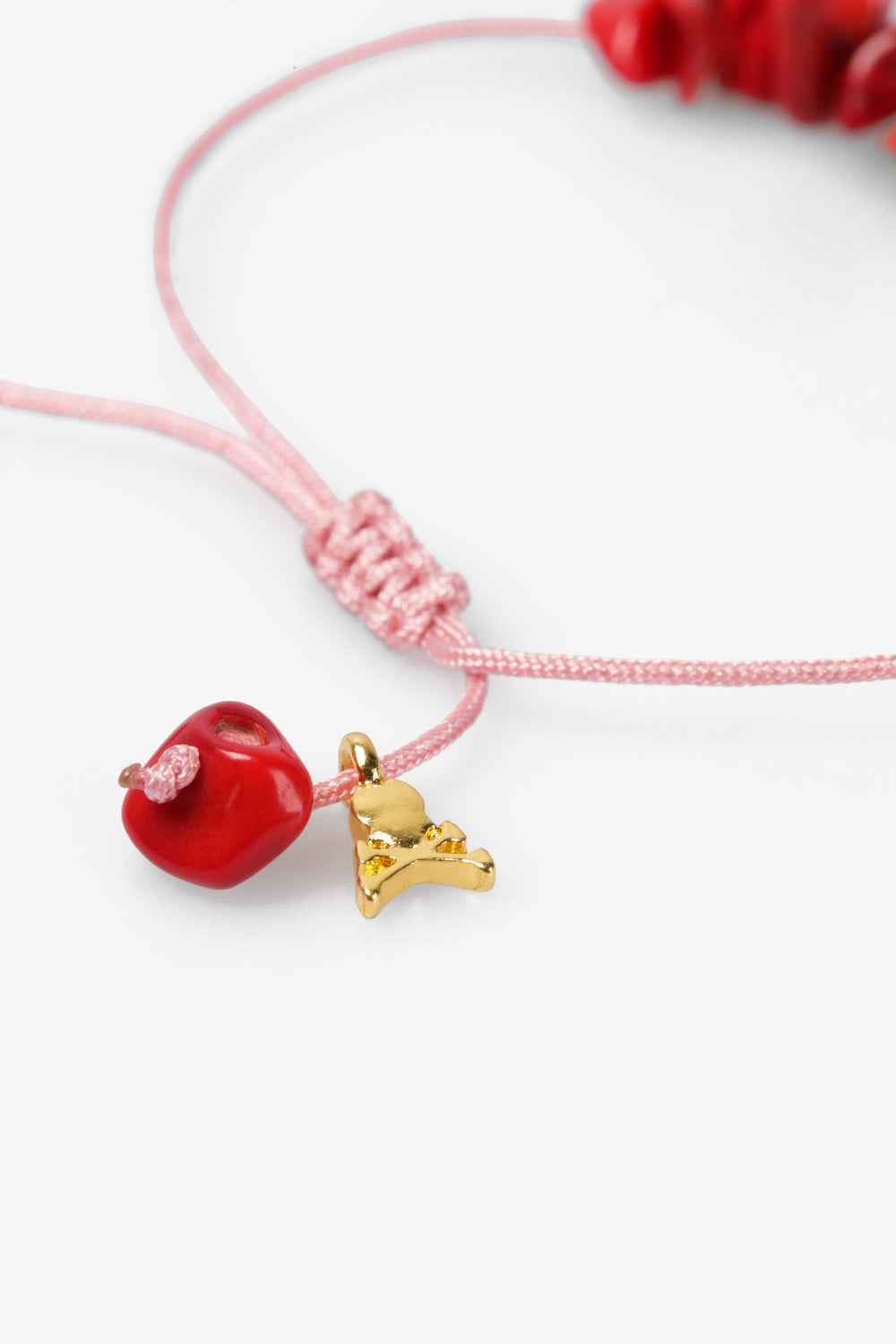 Combined bracelet with natural stone, metal details and textile thread. Handcrafted design with a mix of materials and a delicate finish.