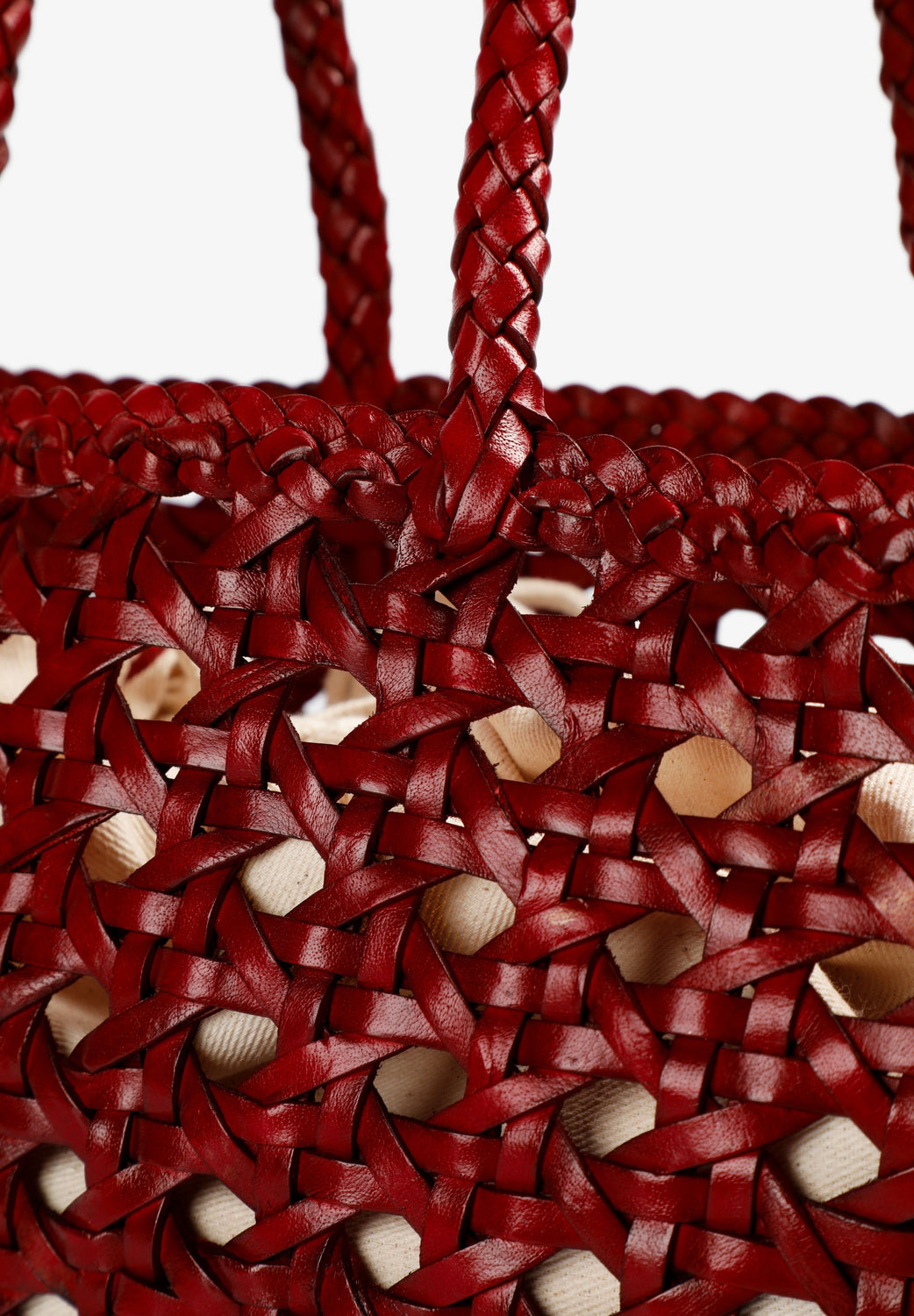 Braided bag made of 100% leather. Cotton lining and adjustable knot fastening.