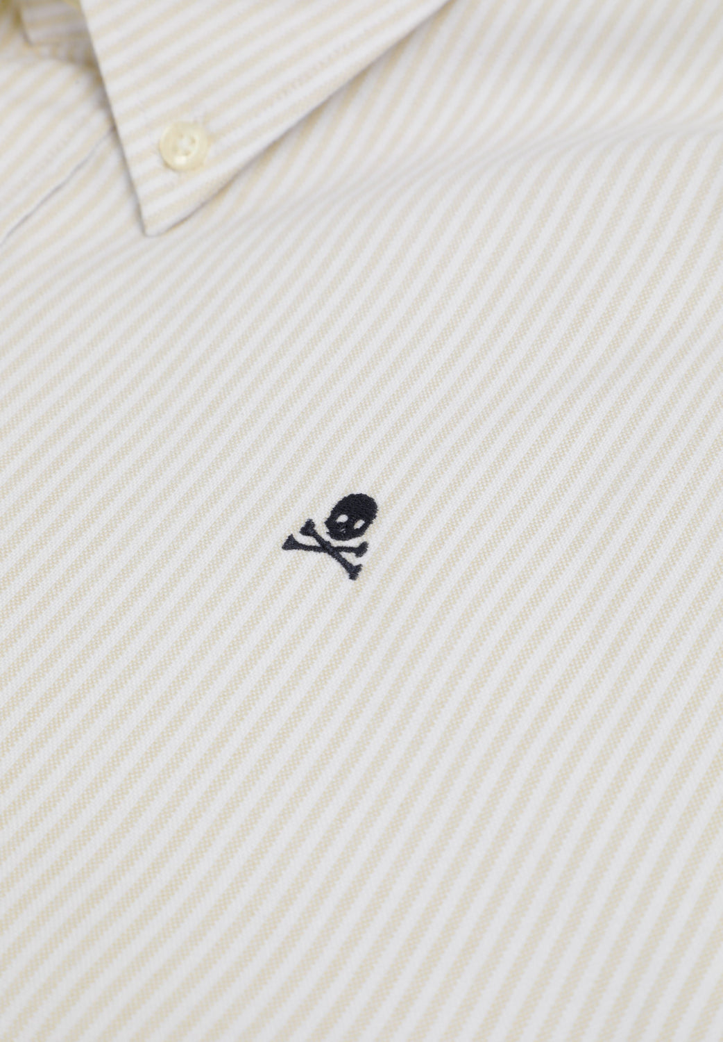 Oxford shirt made of 100% BCI cotton. Button fastening. Striped print. Long sleeves. Buttoned cuffs. Contrast embroidered skull detail on the chest.