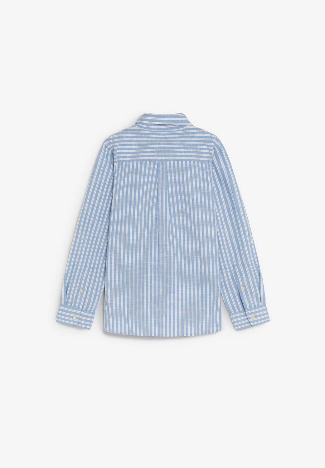 Shirt made of 100% BCI cotton. Collar with buttons and long sleeves with buttoned cuffs. Front button fastening. Striped print and embroidered skull on the chest.