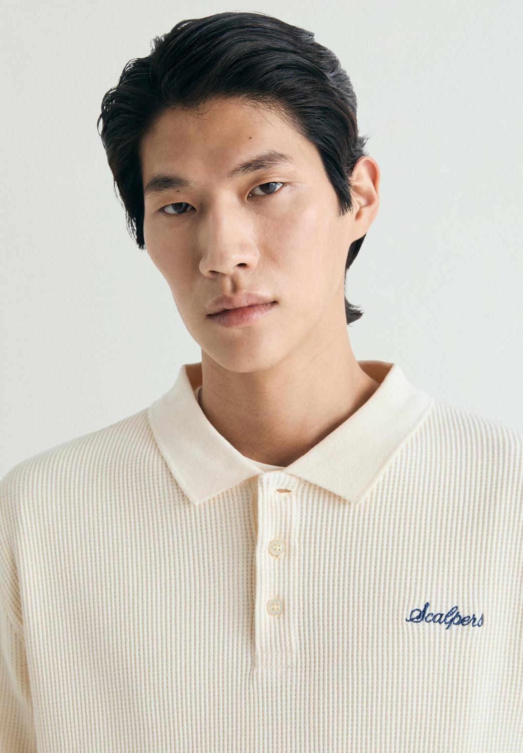 Polo shirt made of 100% BCI waffle cotton fabric. Regular Fit. Ribbed polo shirt collar and long sleeves. Embroidered detail on the chest.