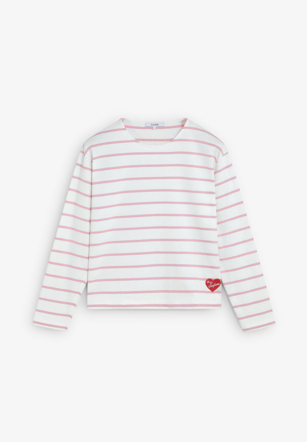 Striped T-shirt made of 100% BCI cotton. Regular fit, round neck and long sleeves. Logo patch detail on the front hem.
