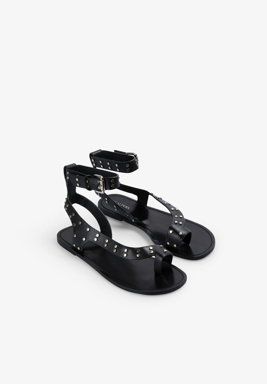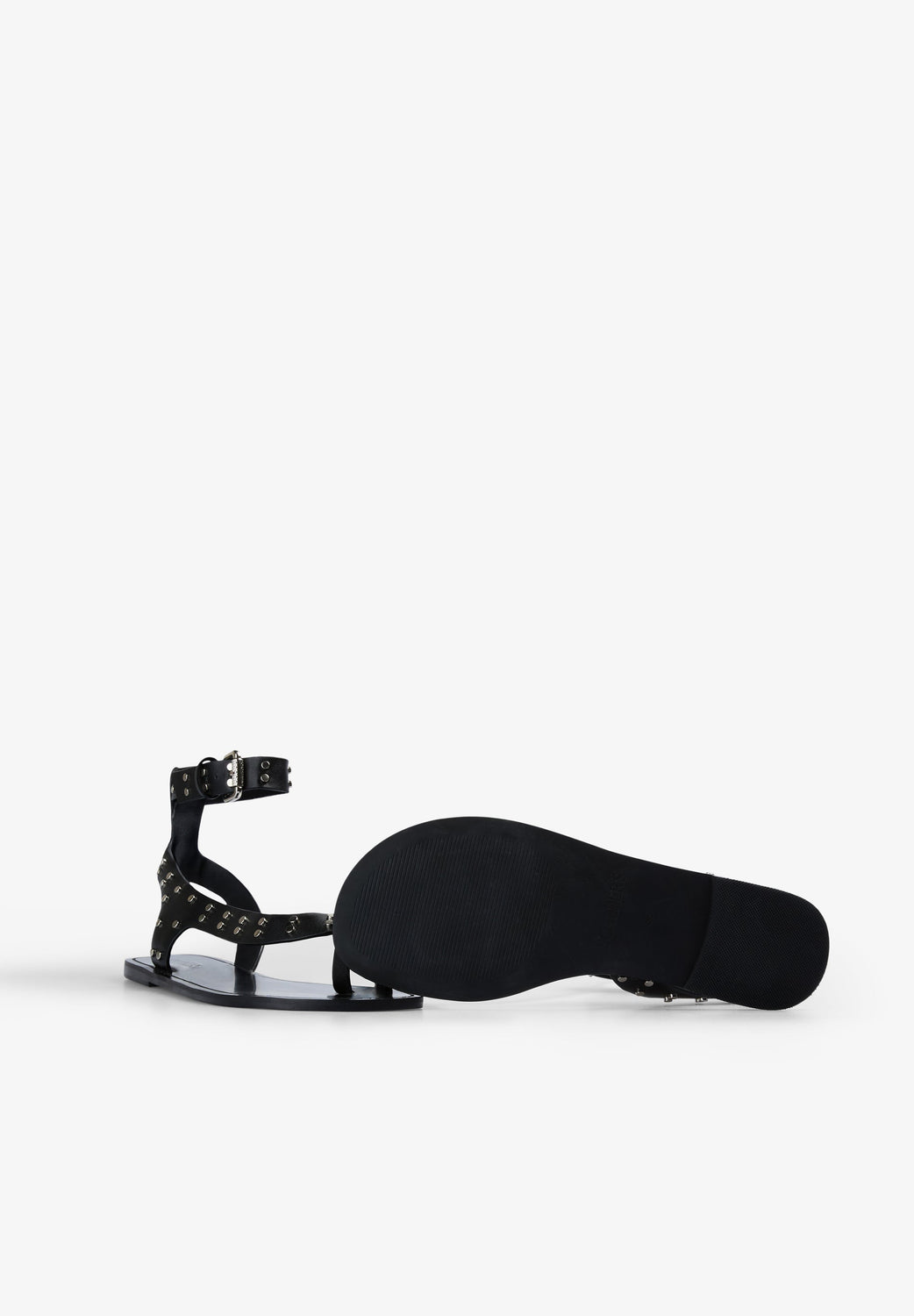 Sandals made of 100% leather with decorative studs. Ankle buckle fastening. Flat rubber sole.