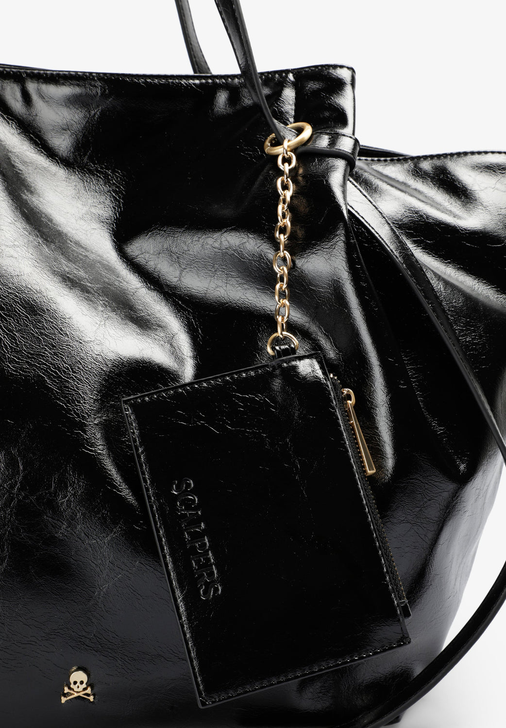 PU tote bag. Lined. Double zipped pocket. Adjustable side straps. Matching wallet inside.