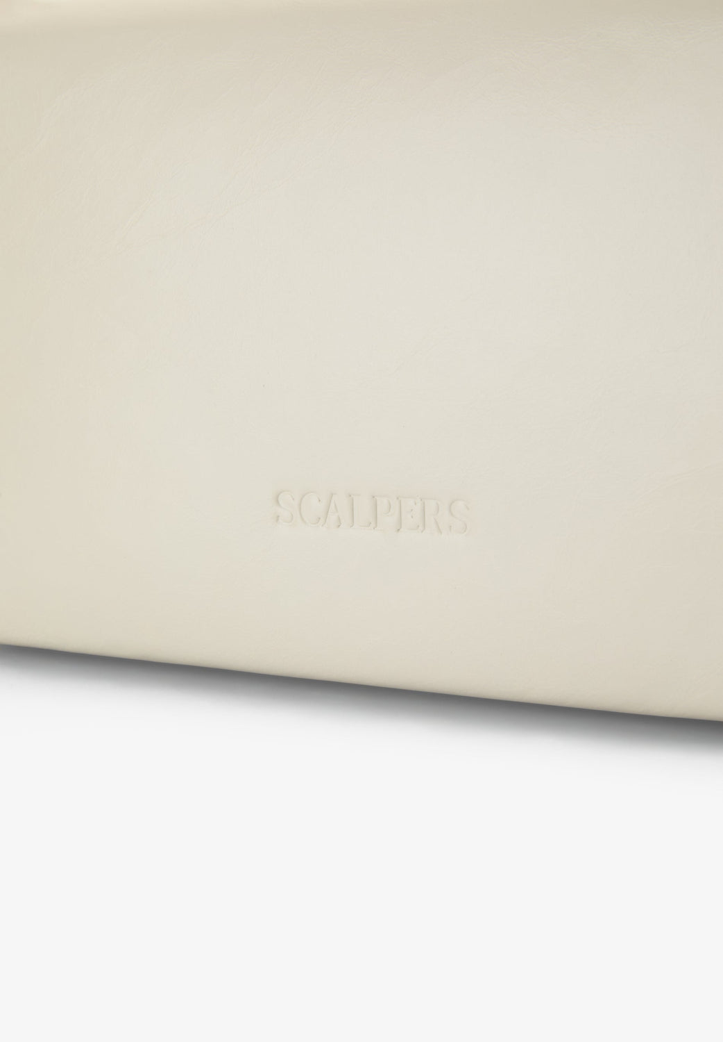 Small flat bag. Made of 100% leather. Snap closure. Long detachable strap and short handle. Side studs.