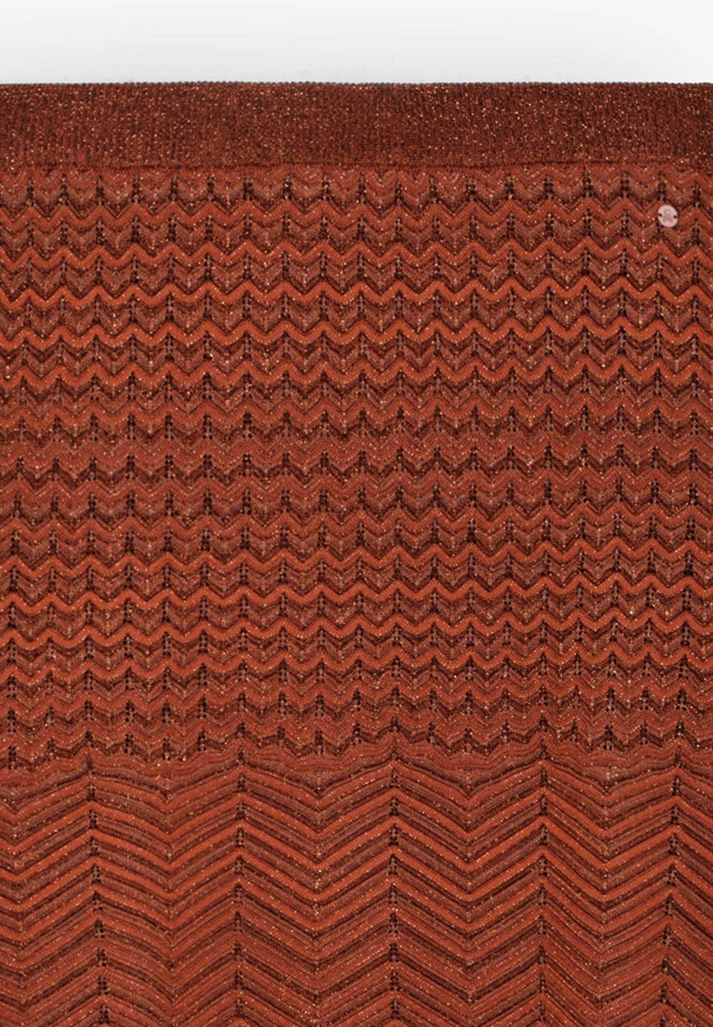 Knitted skirt made with metallic thread. Regular fit, midi length and wavy hem. Elasticated waistband.