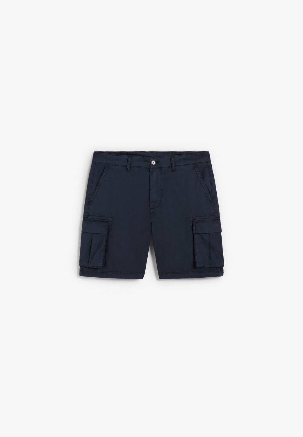 Bermuda shorts made of slightly stretchy cotton. Zip and button fastening. Belt loops. Side pockets.