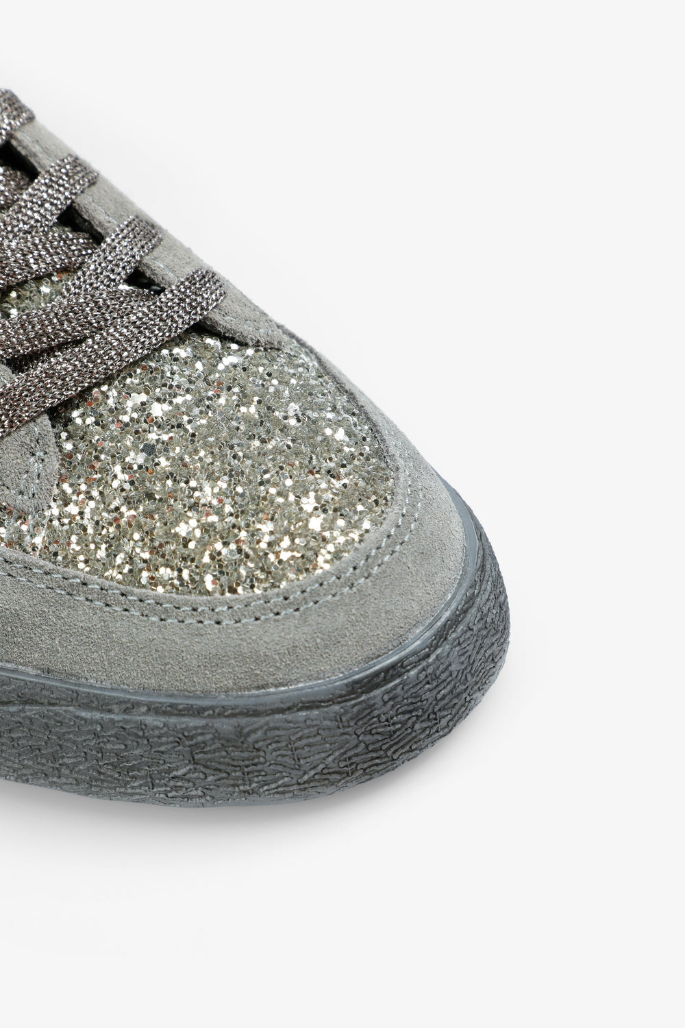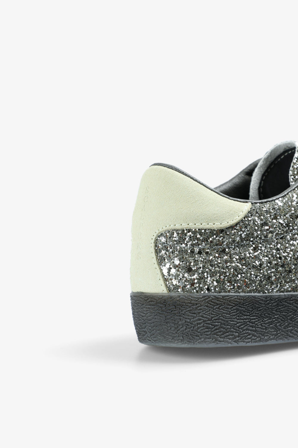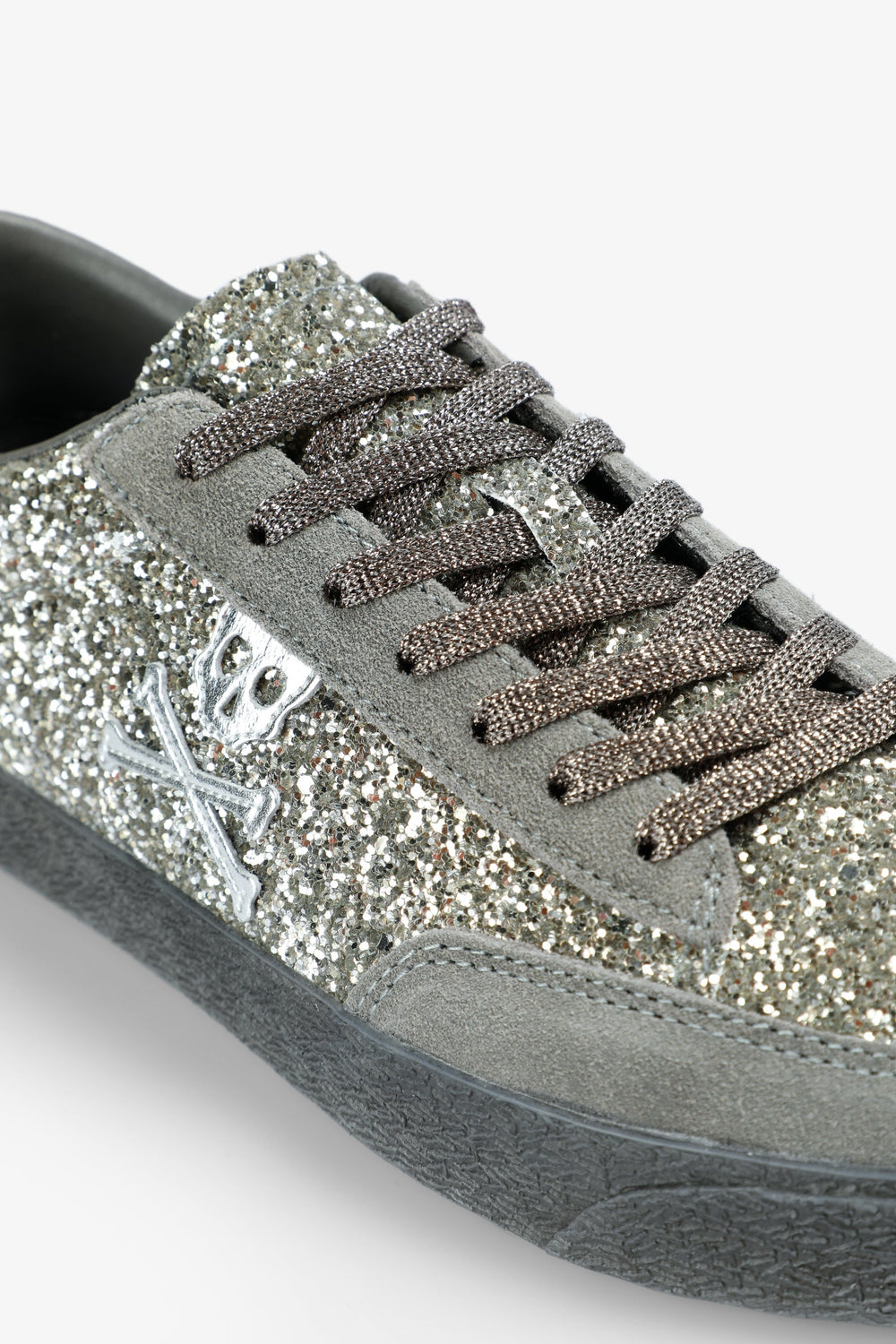 Sneakers vervaardigd van suède. Glitter. Contrasterend geborduurd doodshoofd aan de zijkant. Vetersluiting. Contrasterende hiel met ton sur ton geborduurd logo. Contrasterende rubberen zool.