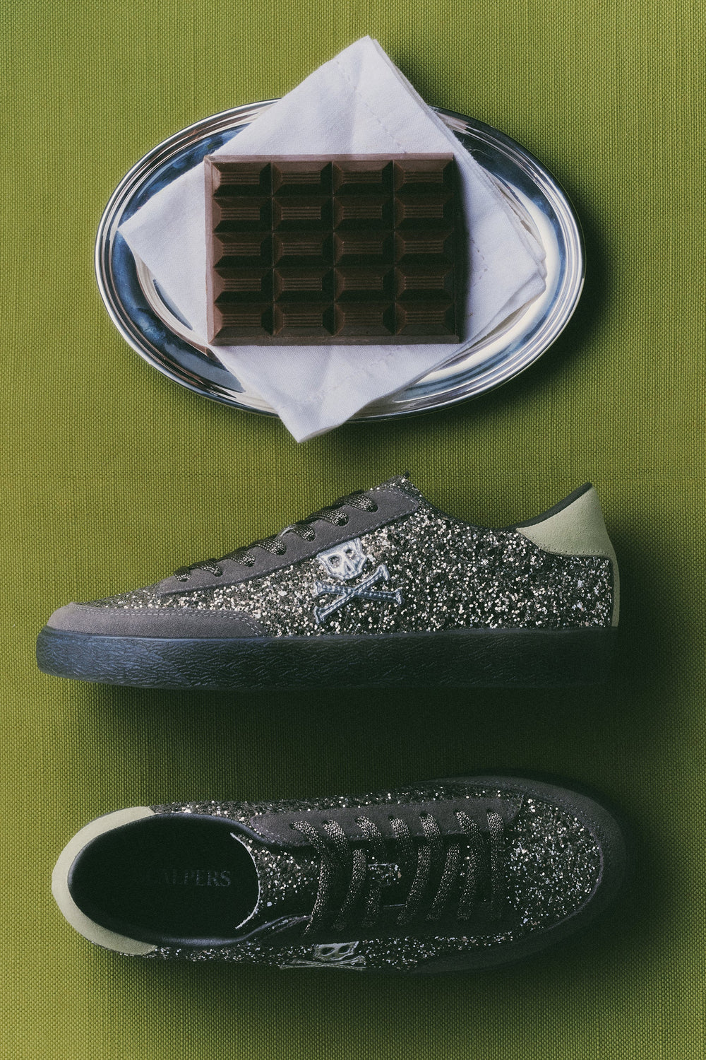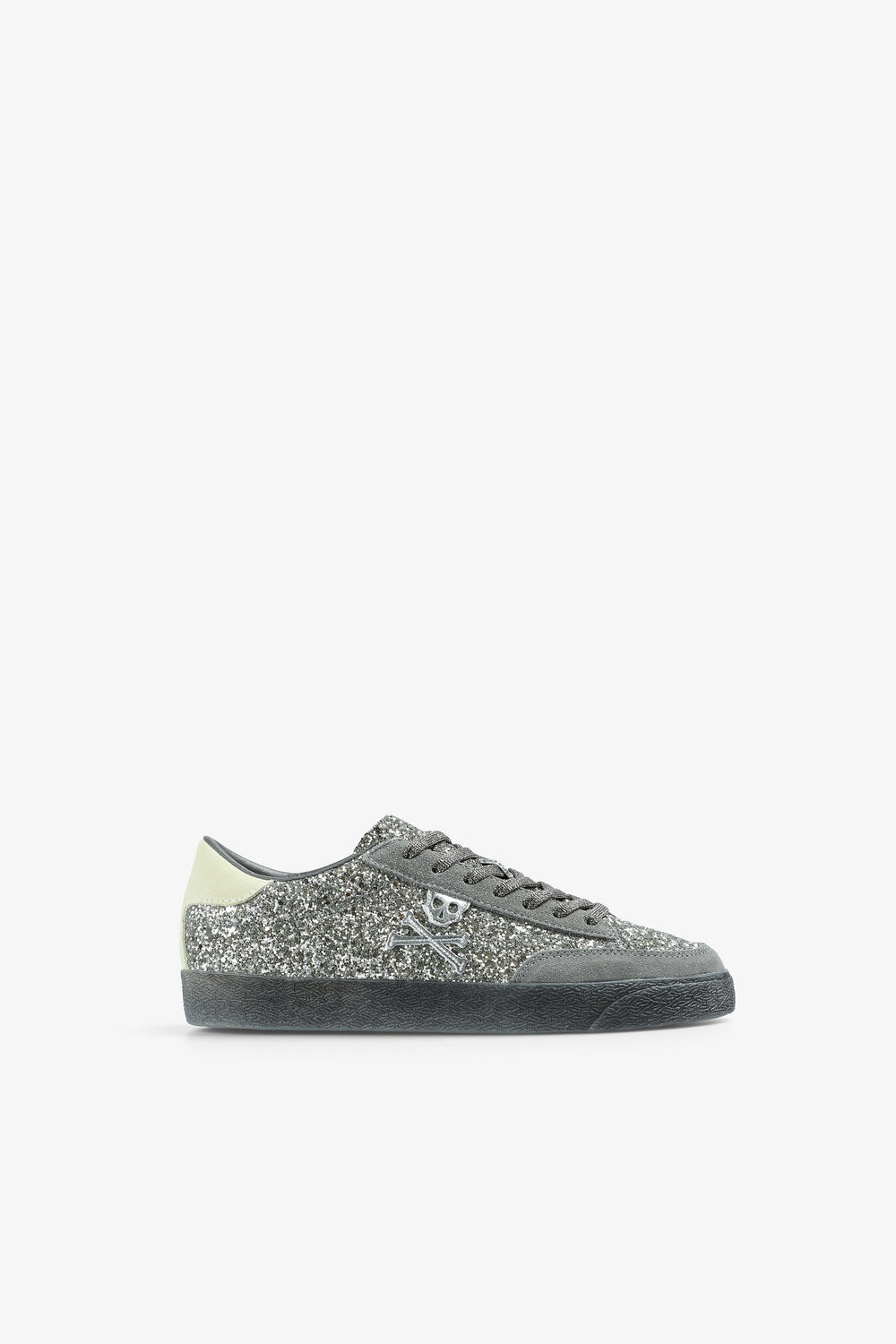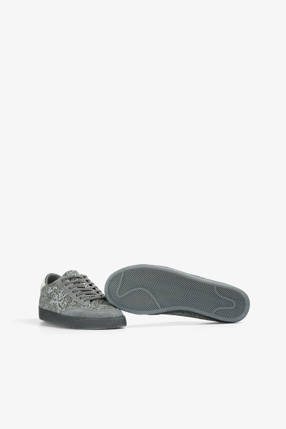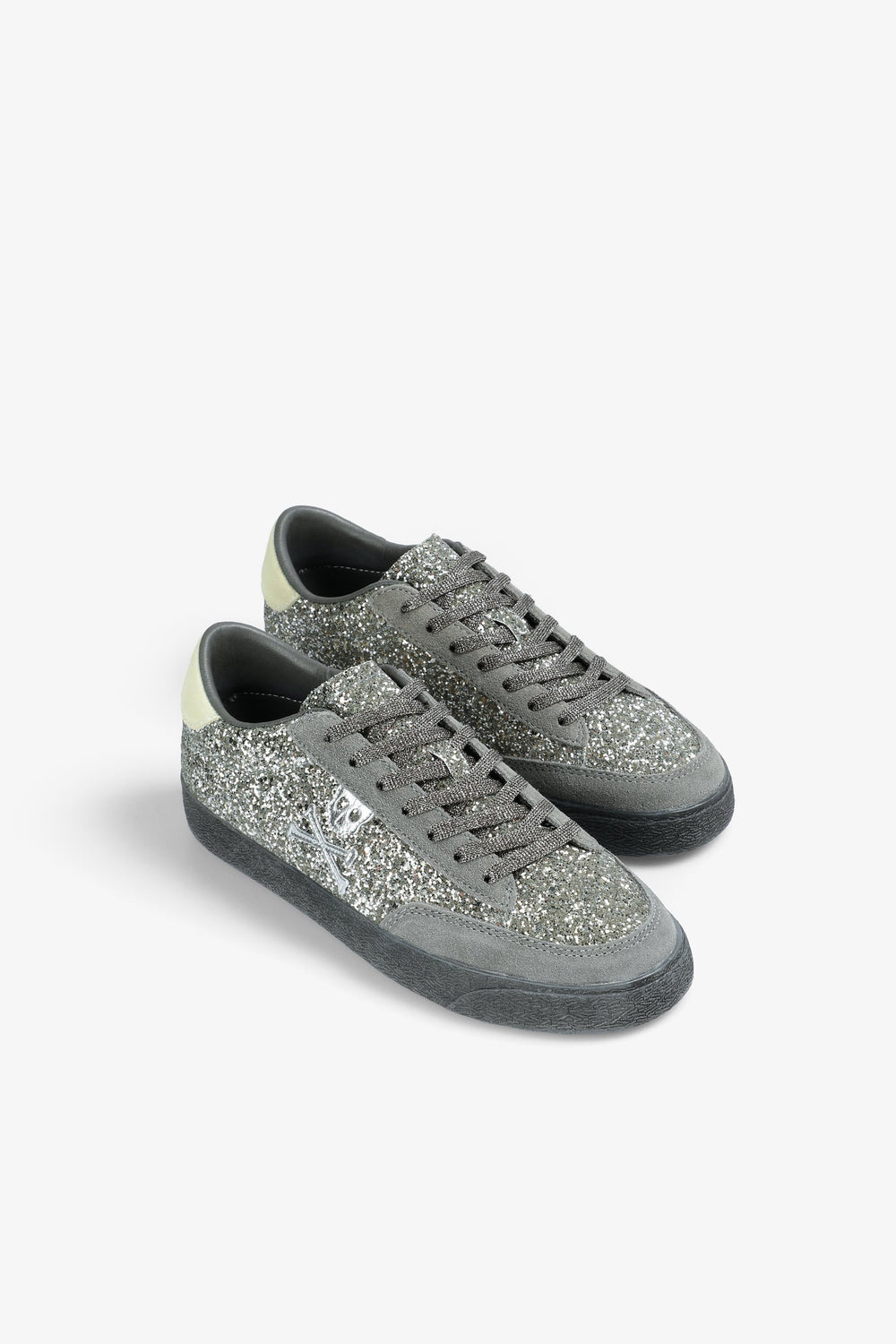 Sneakers vervaardigd van suède. Glitter. Contrasterend geborduurd doodshoofd aan de zijkant. Vetersluiting. Contrasterende hiel met ton sur ton geborduurd logo. Contrasterende rubberen zool.