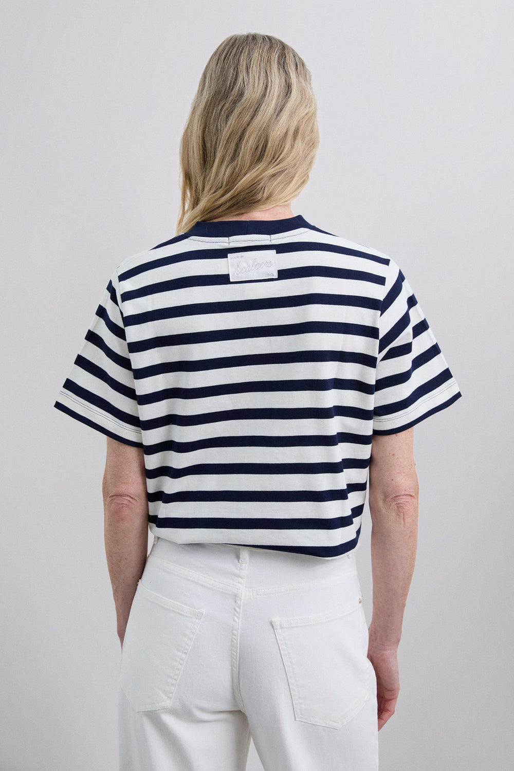 Regular fit T-shirt van 100% katoenen stof. Ronde hals en korte mouw. Logo met label op de achterkant