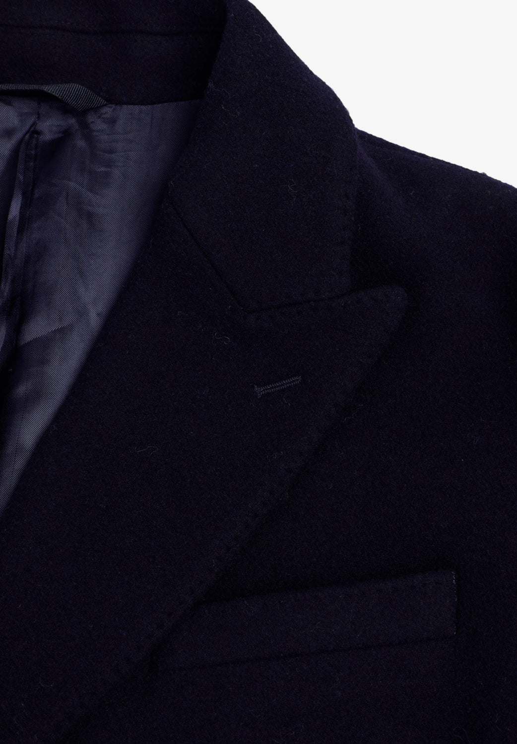 Jas van stof met wol. V-hals met revers en lange mouwen. Gepersonaliseerde manchetknopen. Zak met klep aan de voorkant. Zoom met plooi middenachter. Sluiting voorkant met double breasted knoopbies.