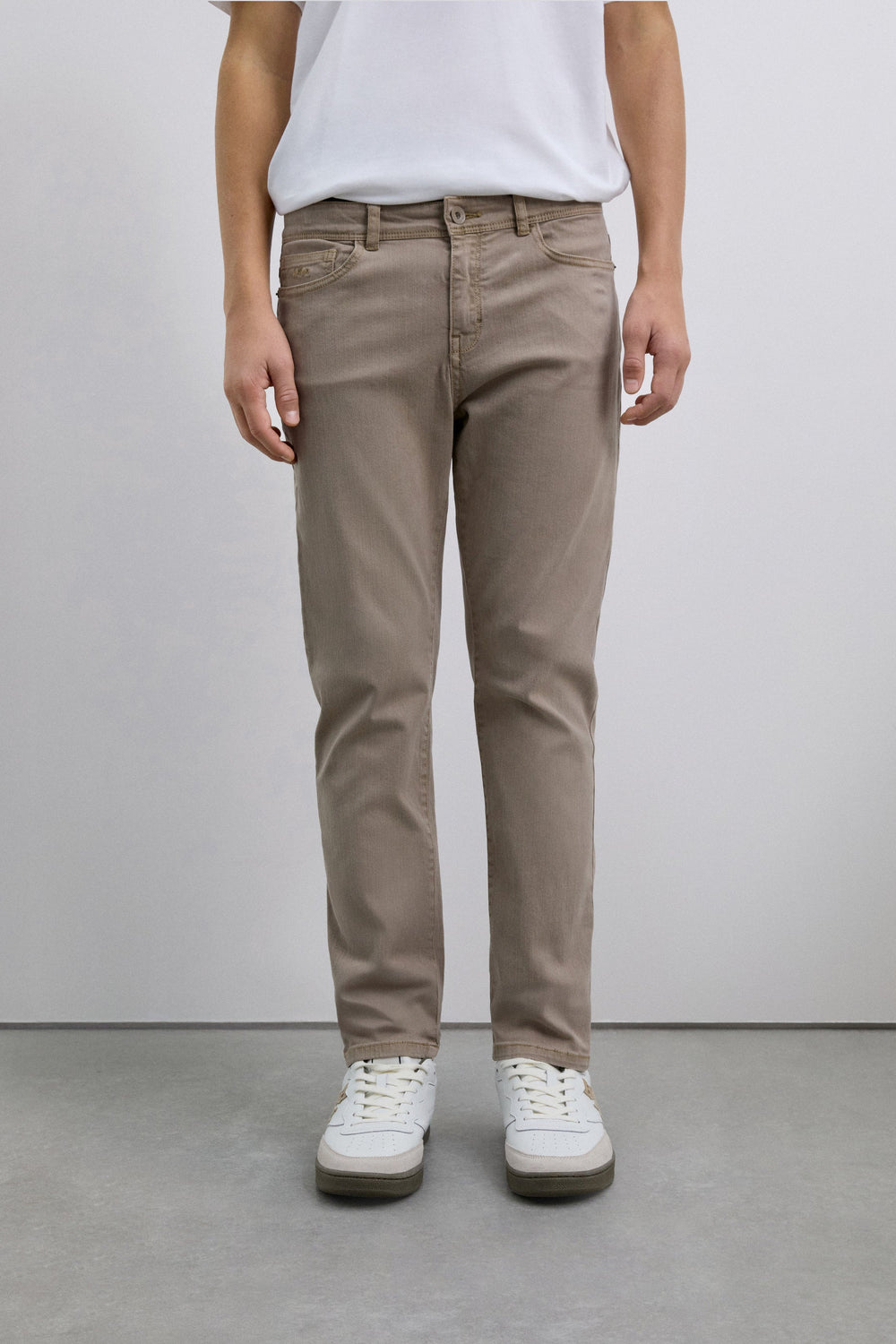 Trousers made of BCI cotton. Front button fastening. Front and back pockets.