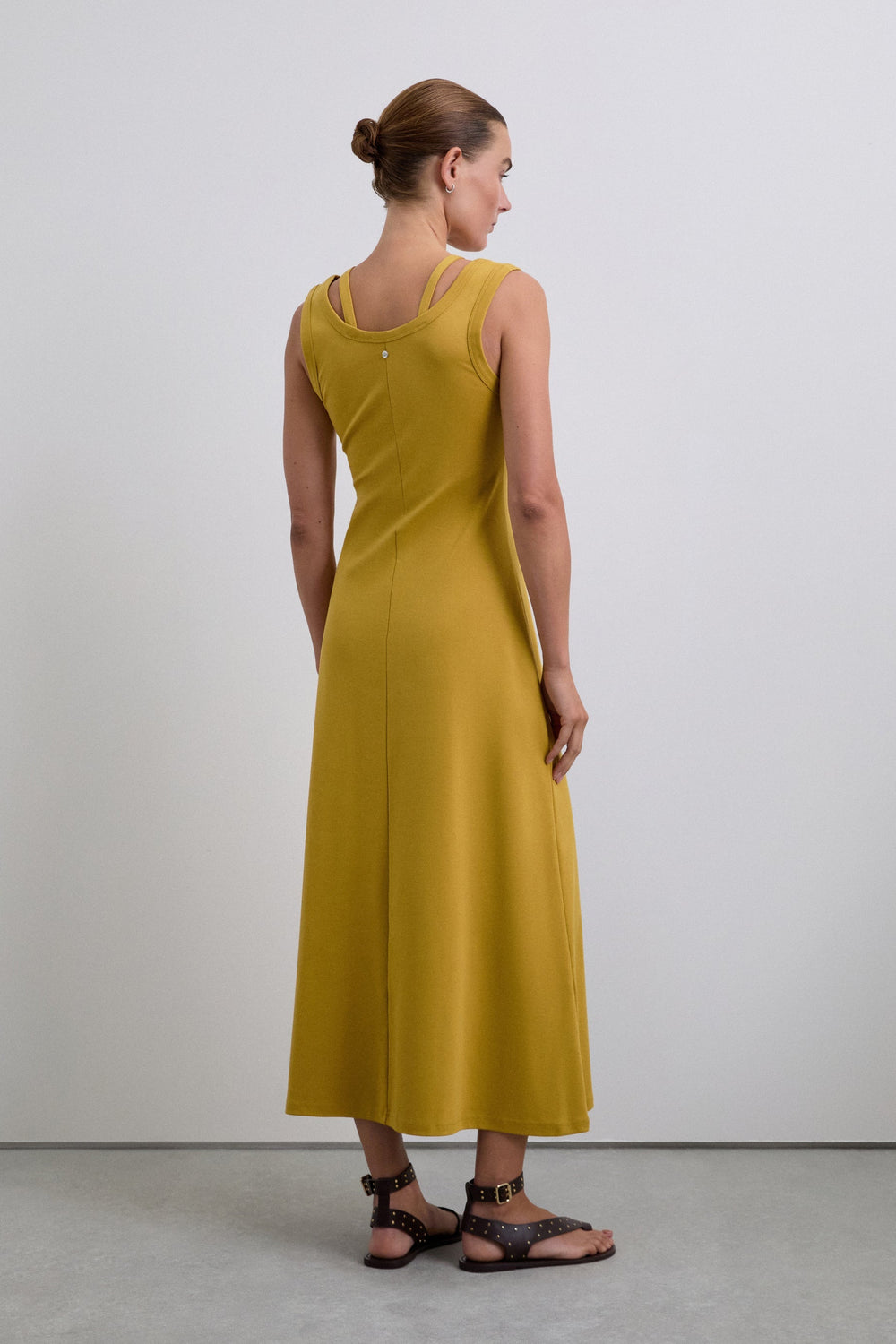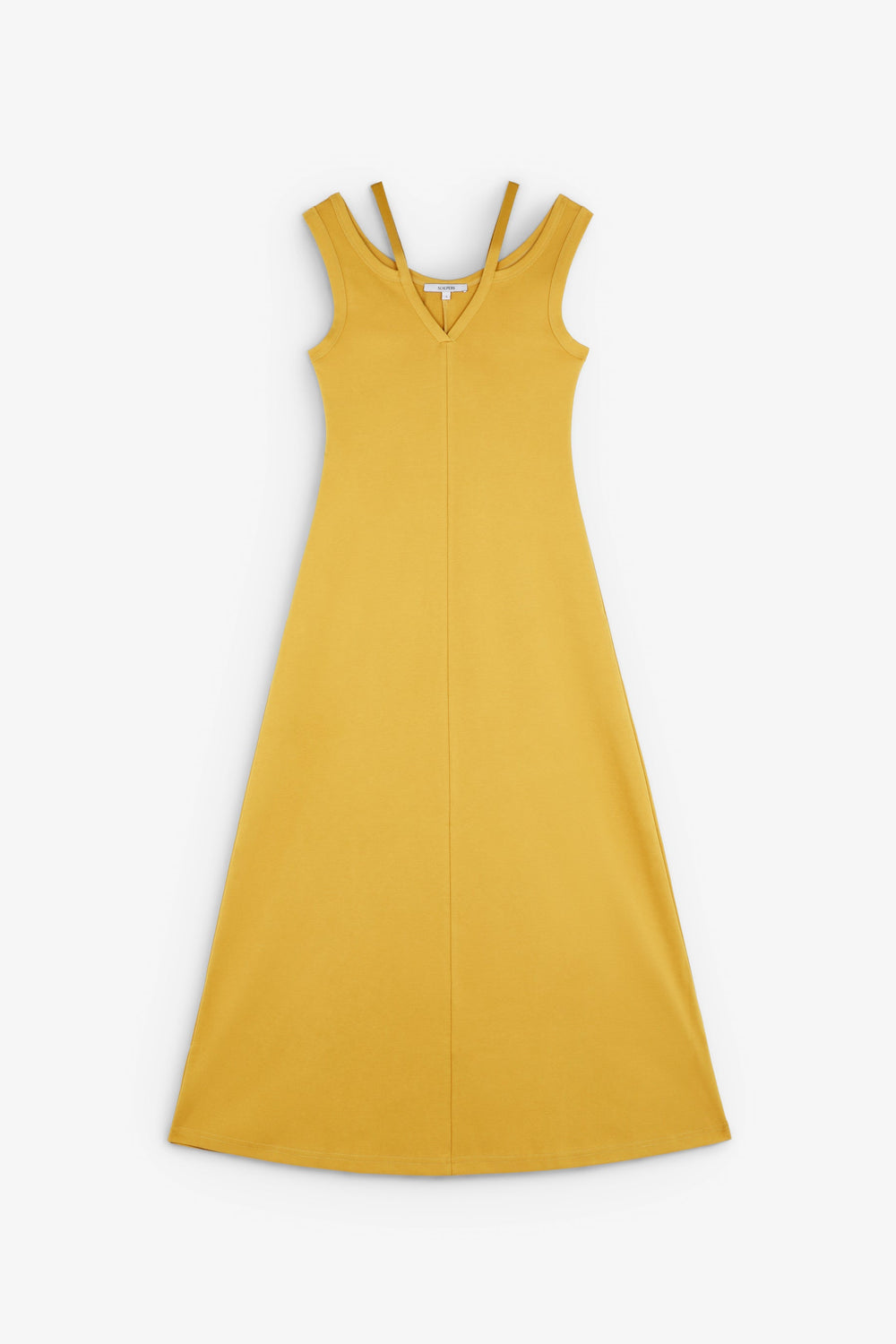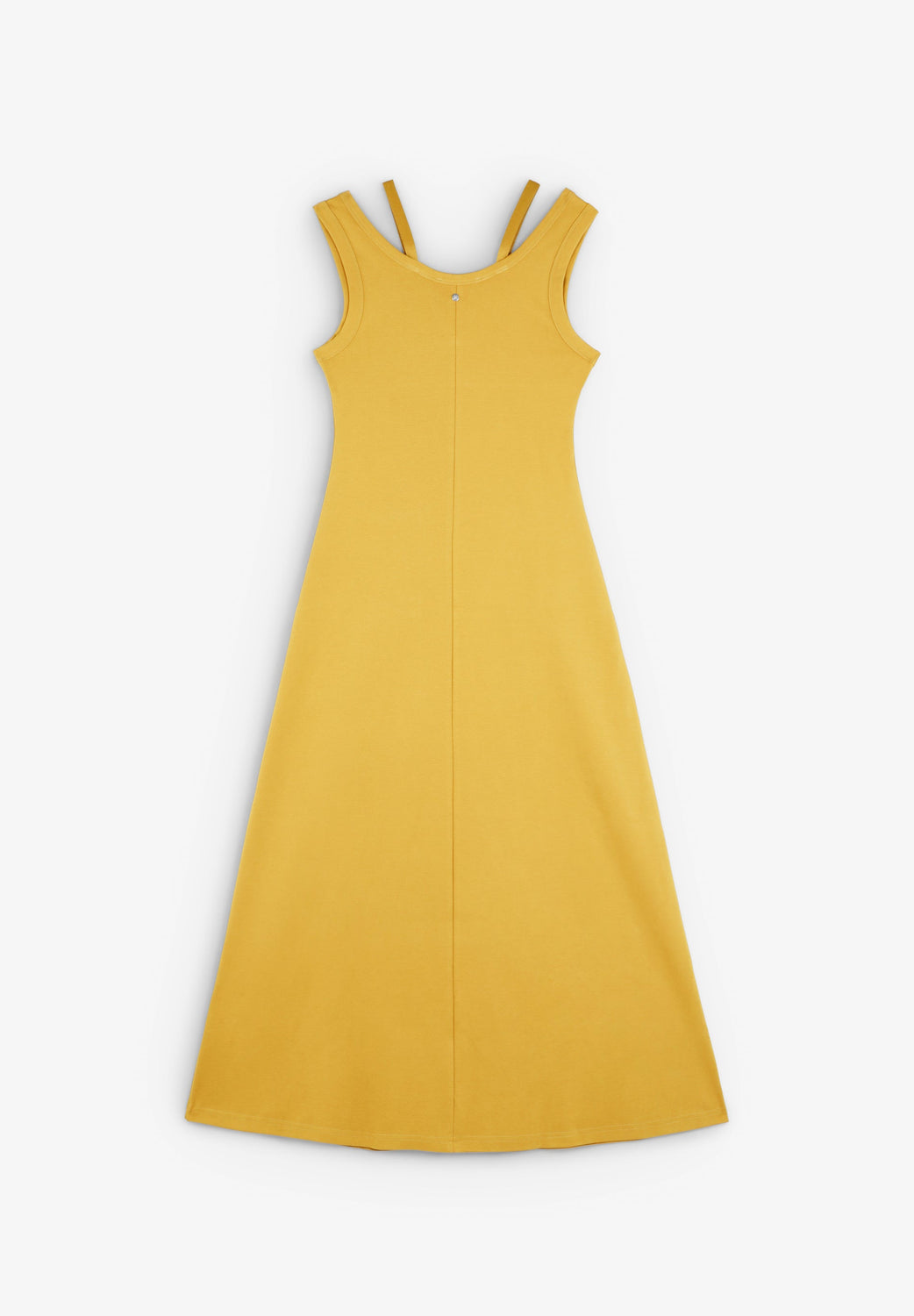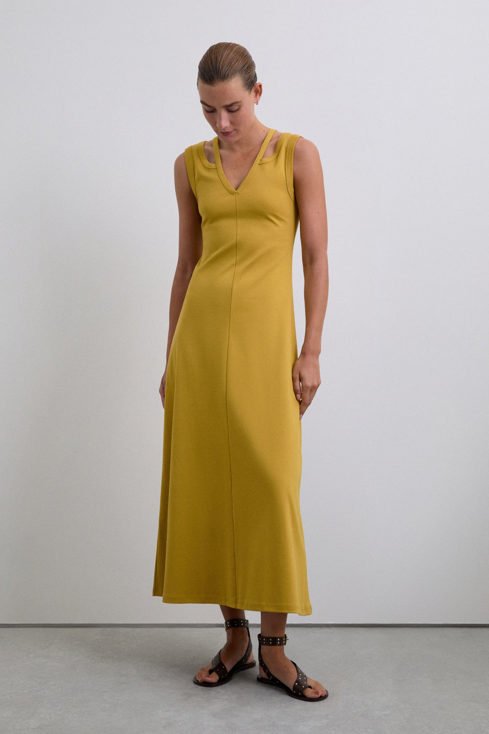 Midi dress made of 100% organic BCI cotton. Sleeveless. V-neck with cut-out details and double straps.
