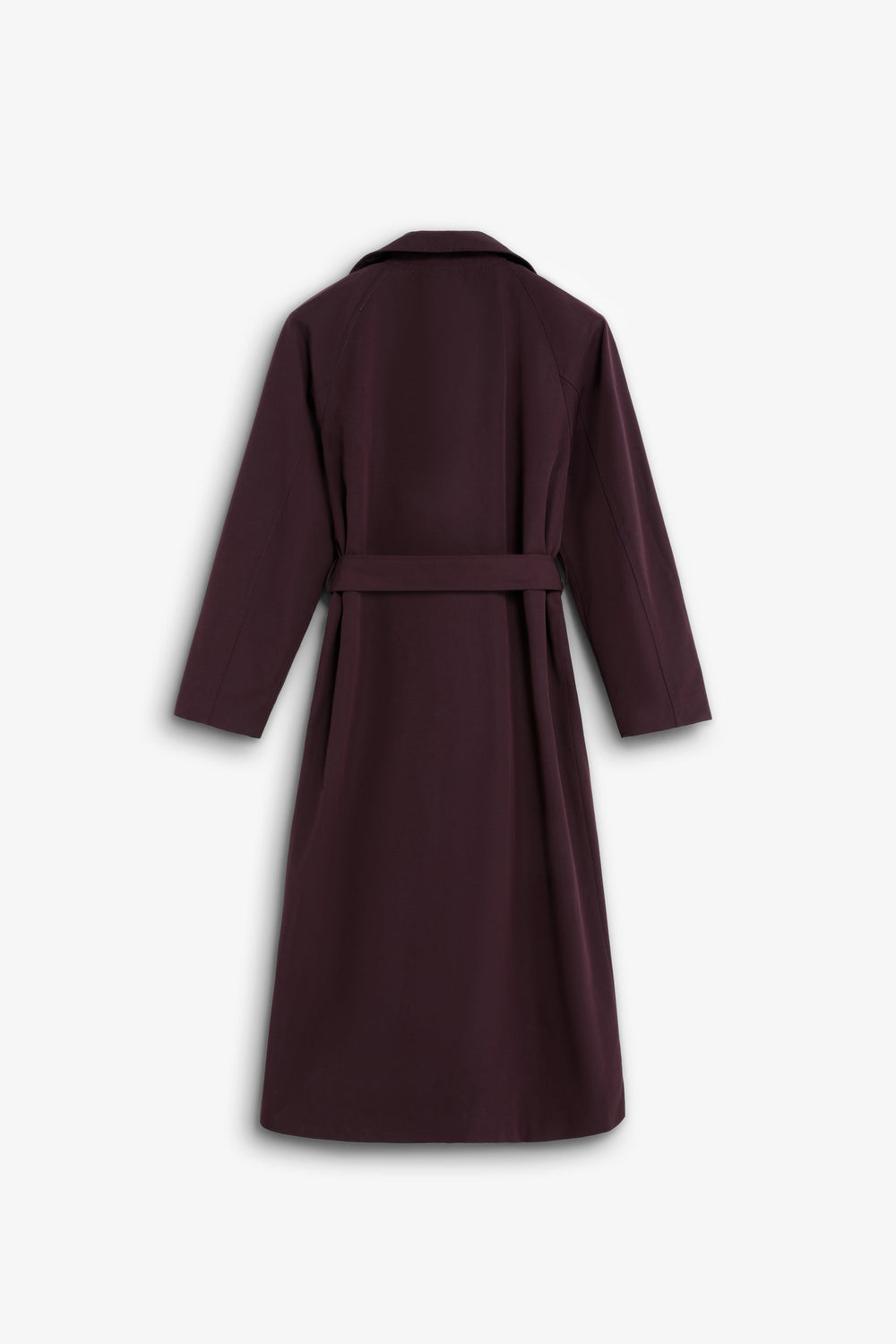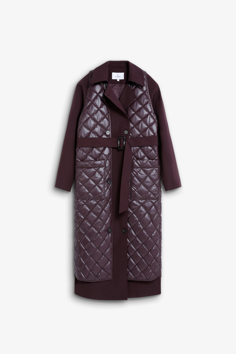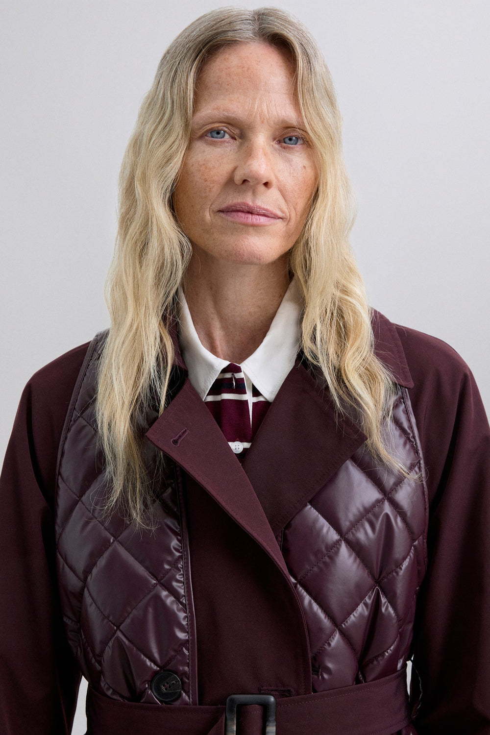 Waterproof trench coat. Slightly oversize. Collar with button fastening and front fastening with buttons and belt. Long sleeves. Detachable puffer vest.