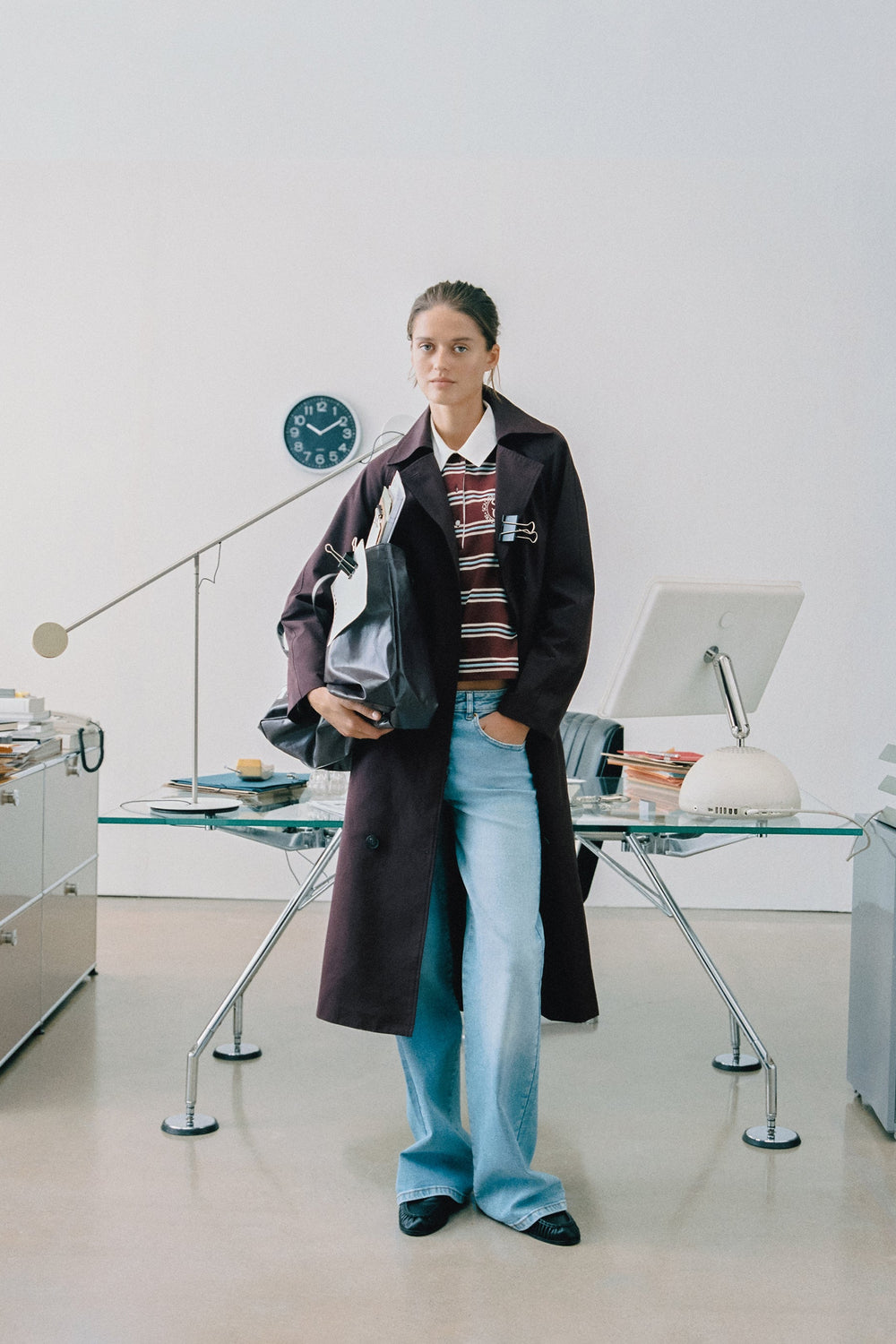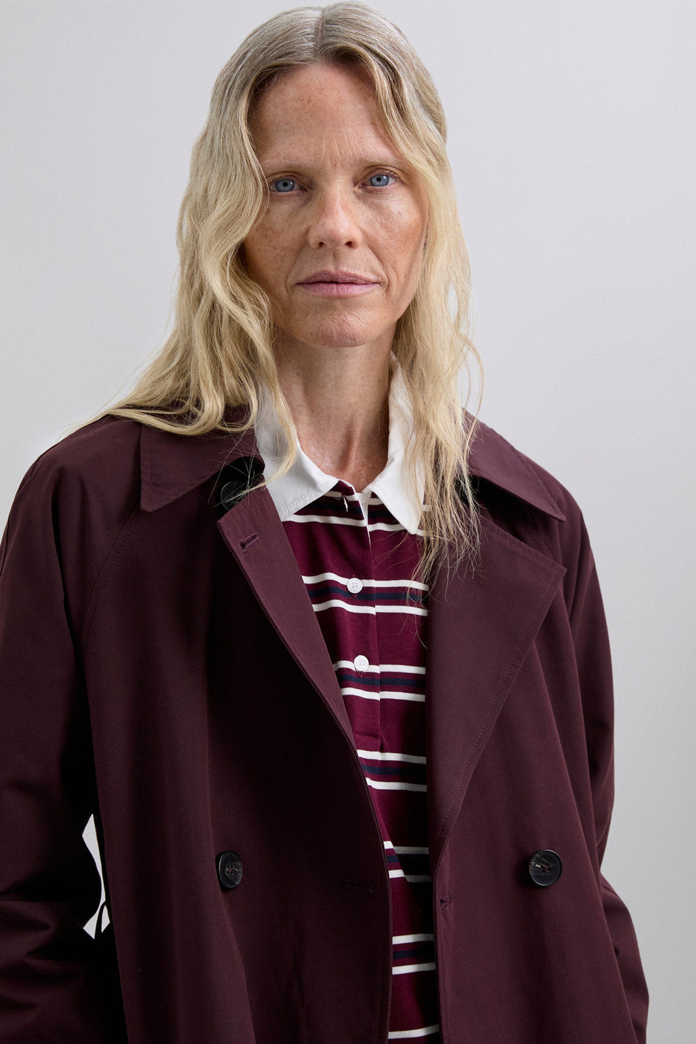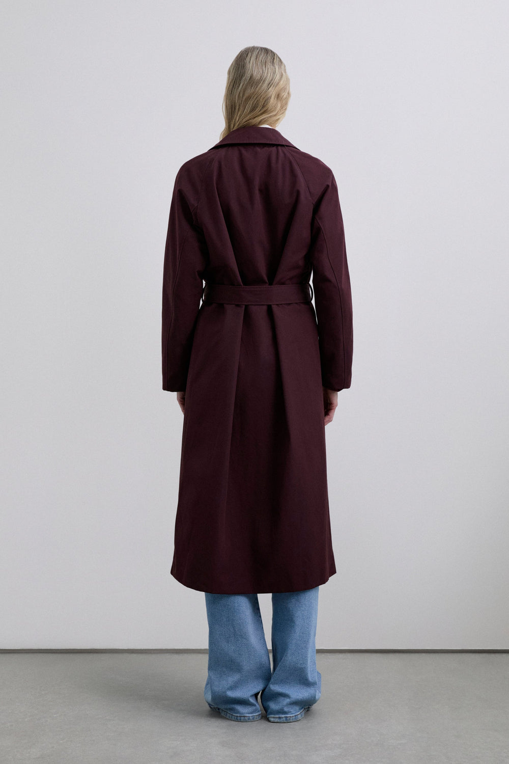 Waterproof trench coat. Slightly oversize. Collar with button fastening and front fastening with buttons and belt. Long sleeves. Detachable puffer vest.