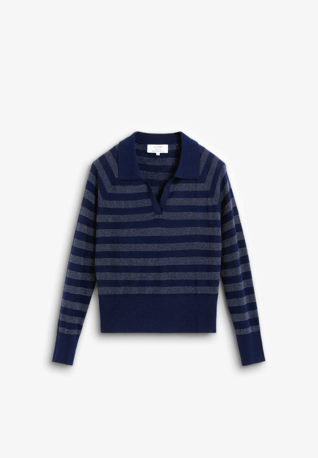 METALLIC STRIPE POLO SWEATER
