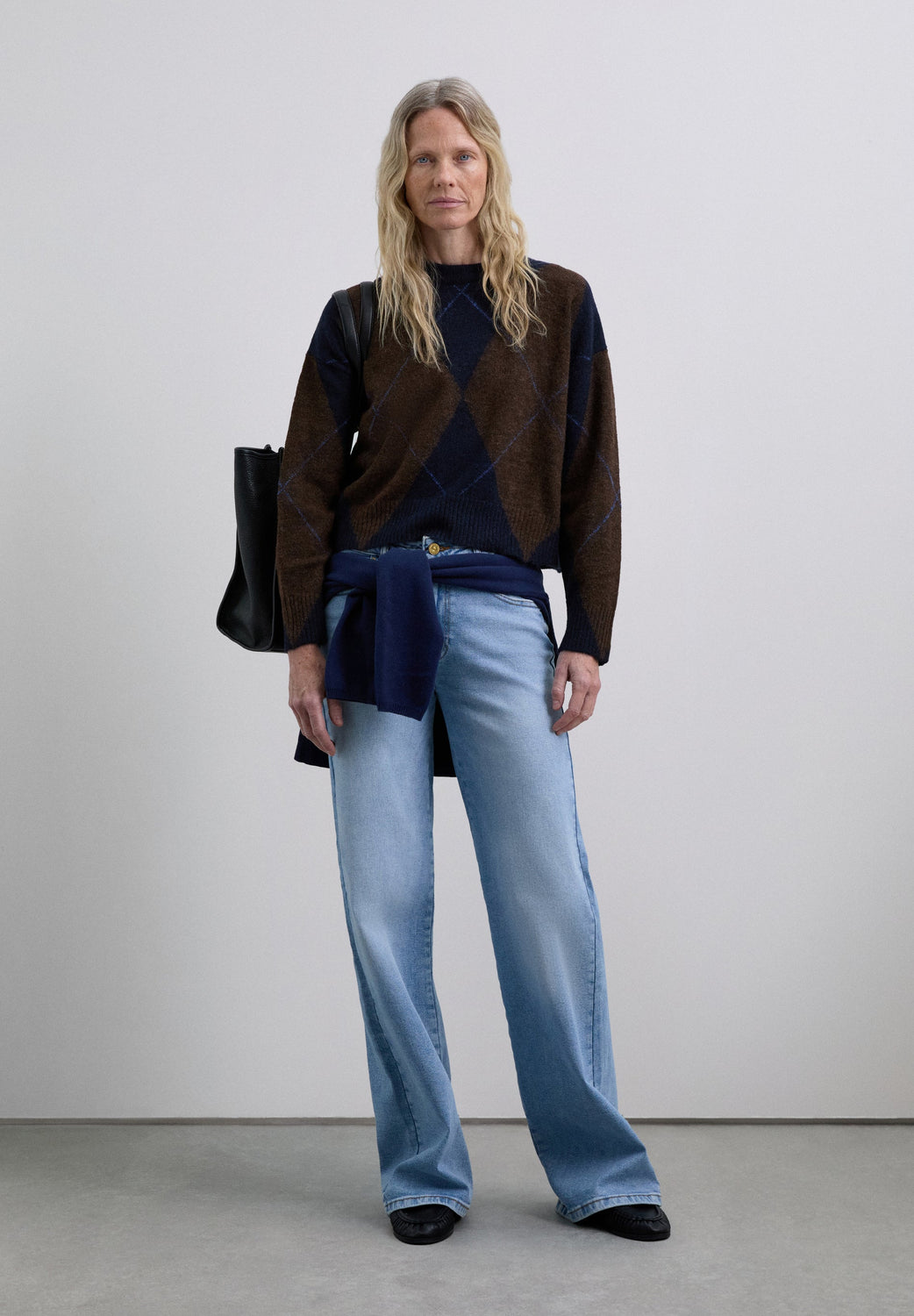 Sweater made of wool blend. Diamond pattern. Regular fit. Ribbed round neck. Long sleeves with ribbed cuffs.