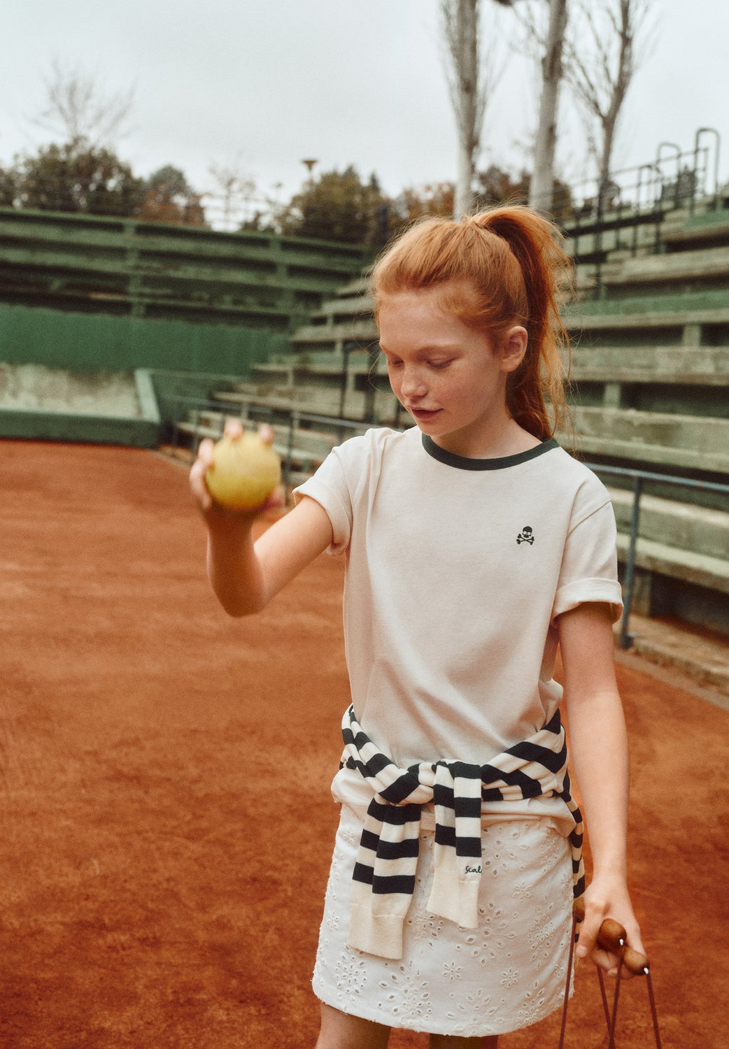 Short sleeve T-shirt with contrast round neck made of 100% BCI cotton. Lemon print on the back and logo detail on the chest.